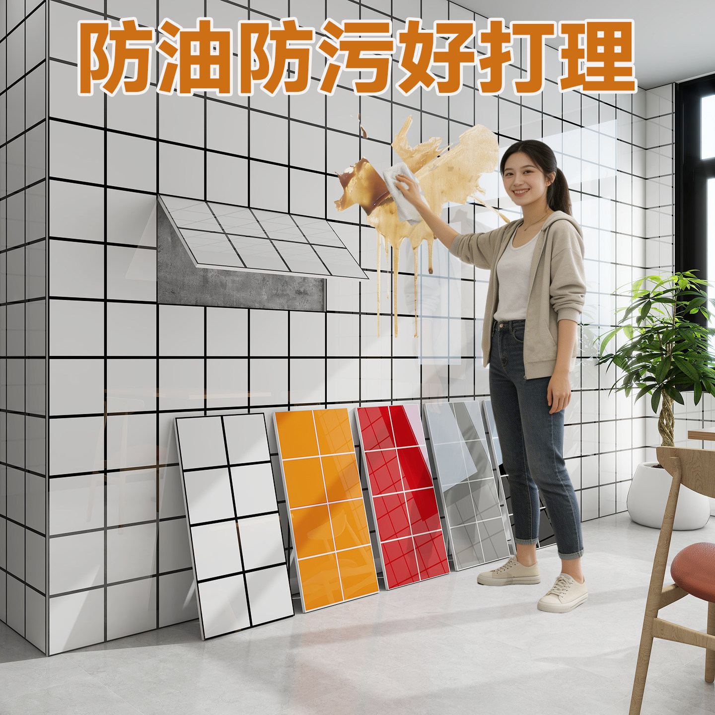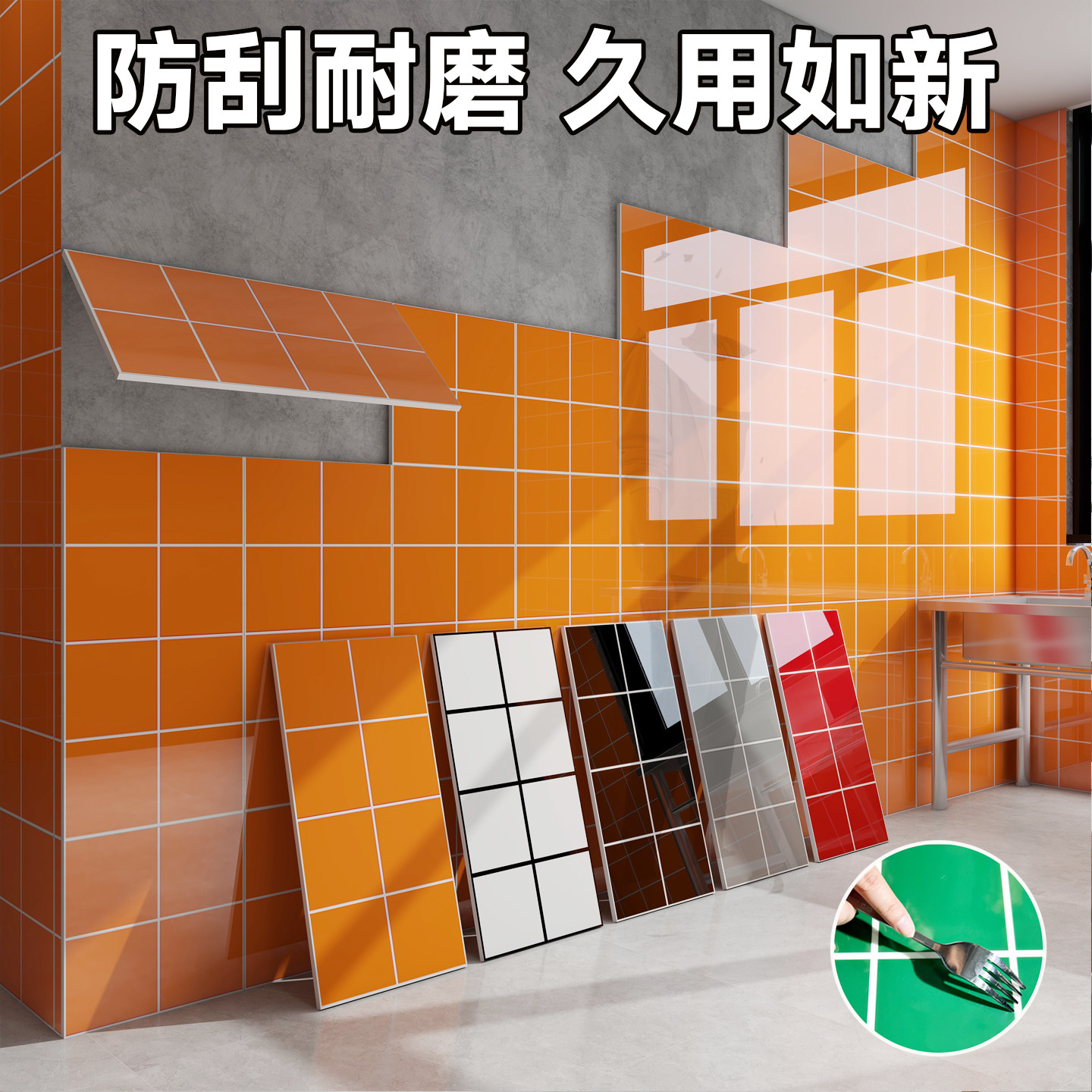 厨房防水防油贴纸墙贴仿瓷砖自粘护墙板掉灰墙专用墙纸商用餐饮厚