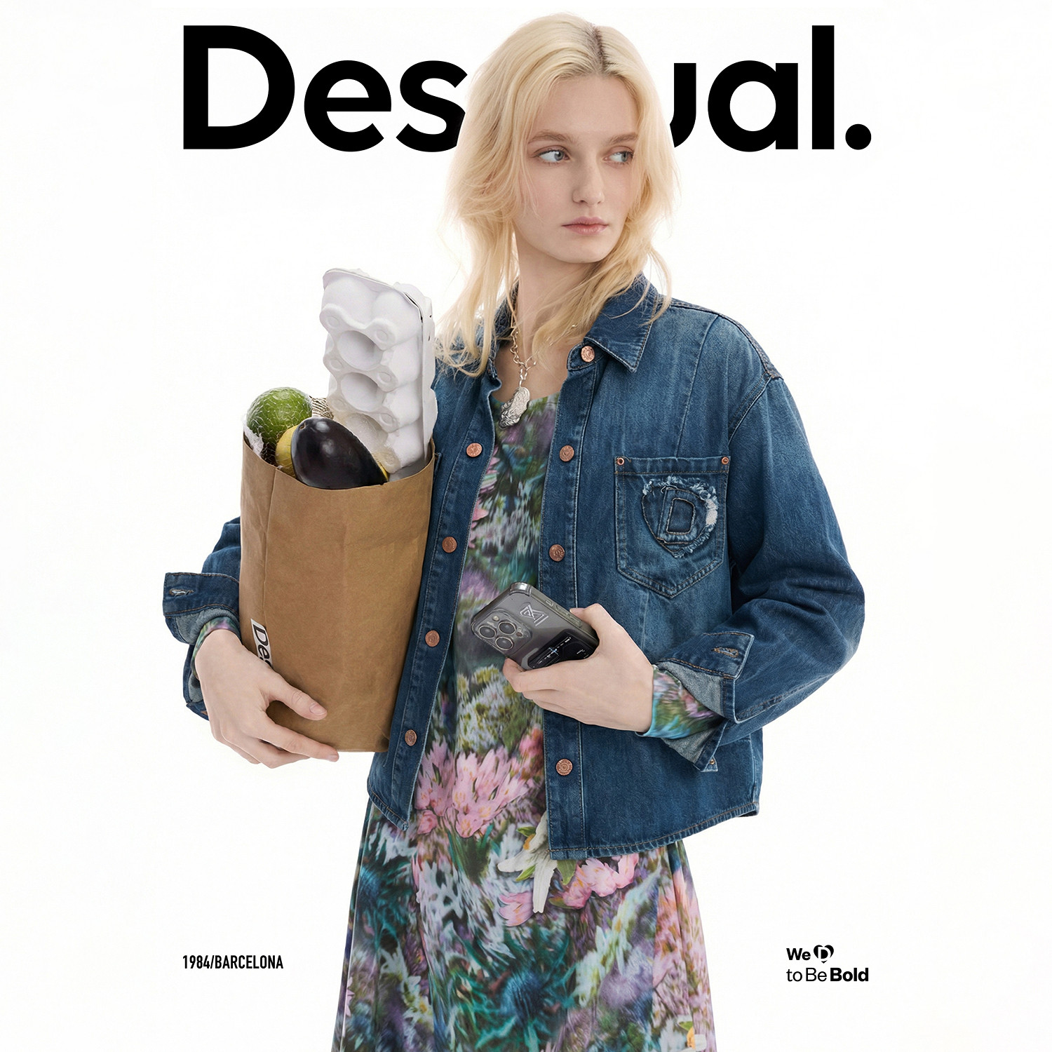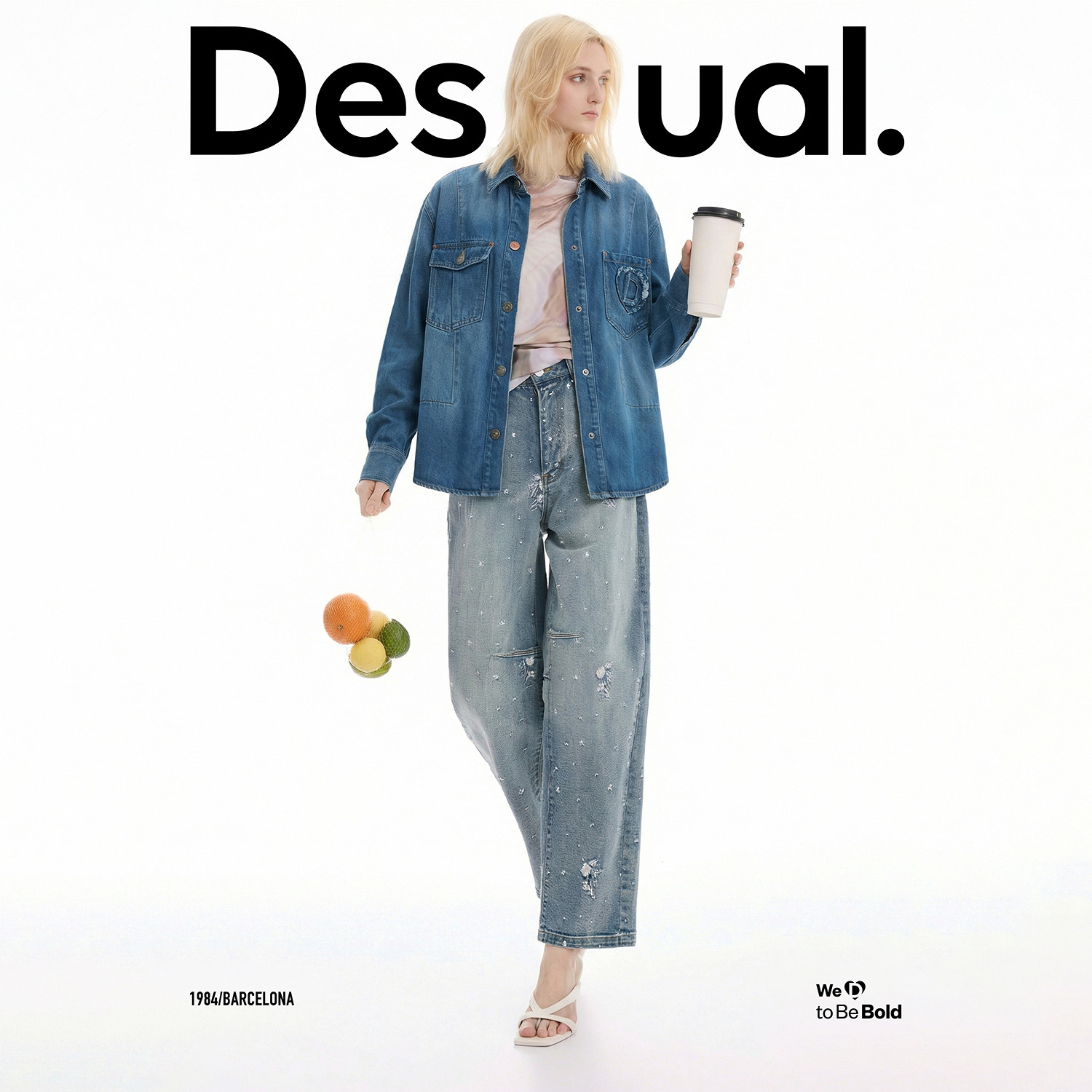 外套 衬衫 Desigual26春夏新品 水洗牛仔解构分割口袋贴布宽松女式