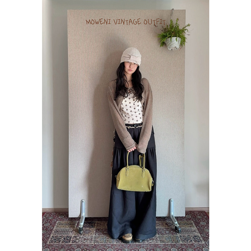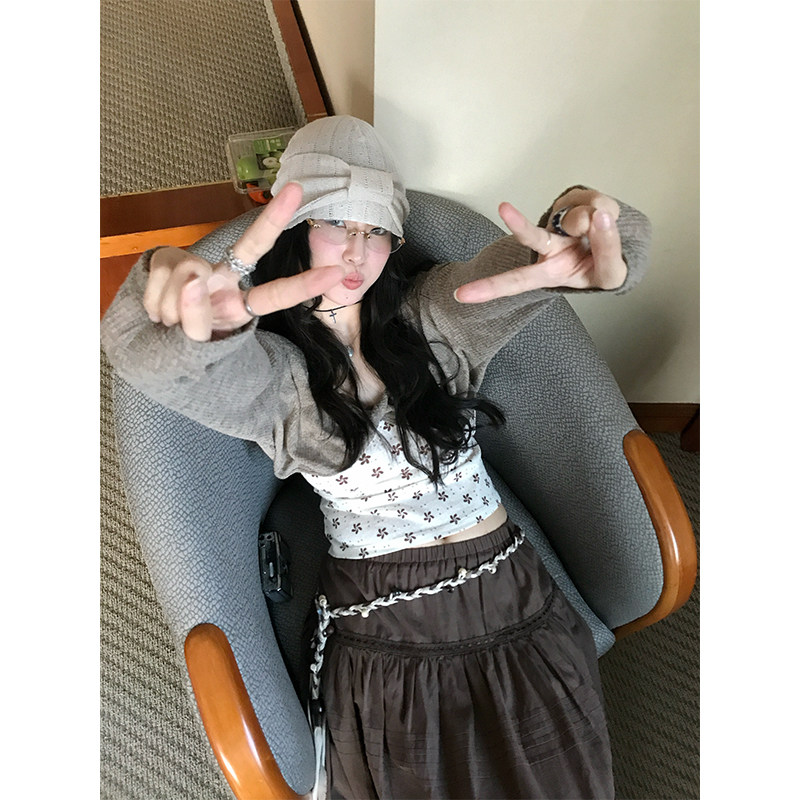小上衣 2026年女春休闲百搭修身 MOWENTI文文婷 烟灰雾复古针织罩衫