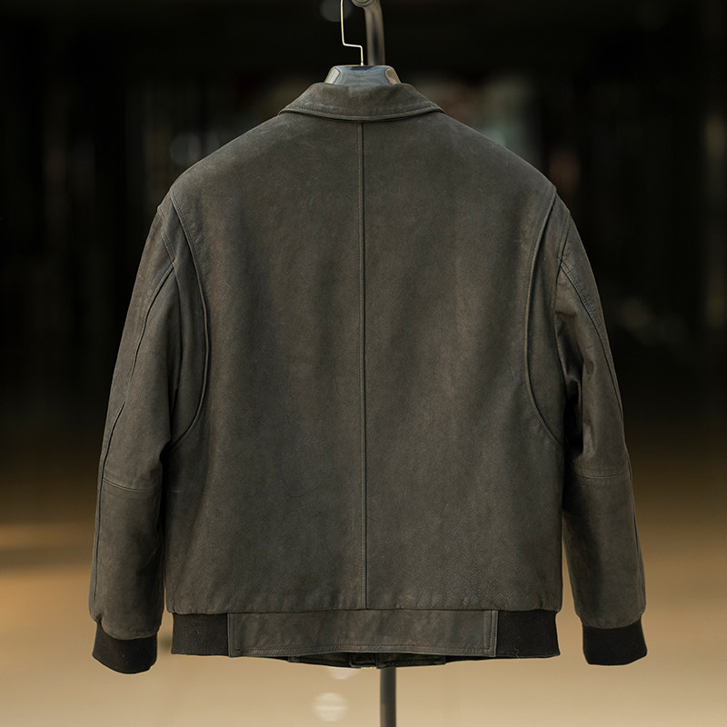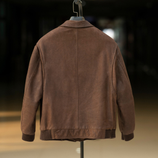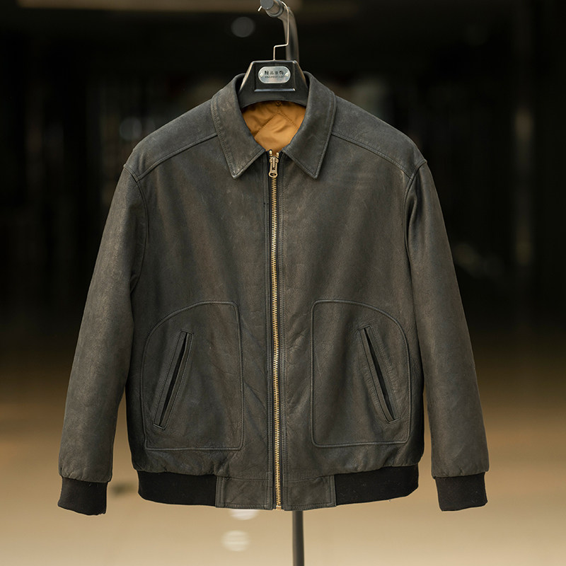 复古头层小牛皮水洗工艺夹克薄棉皮衣男保暖防风轻便外套简约百搭