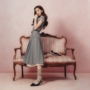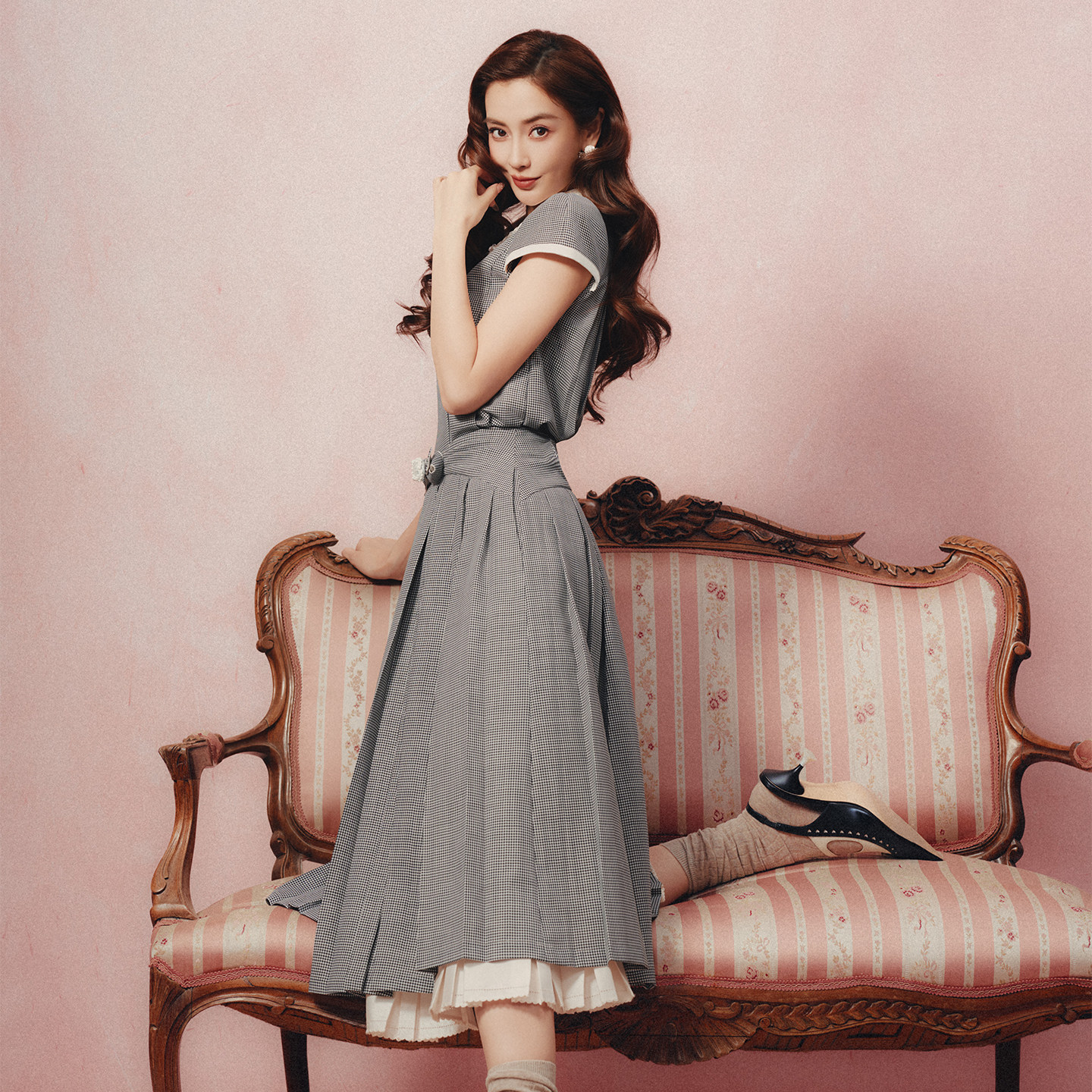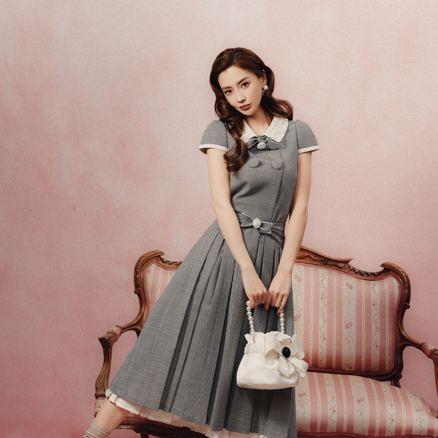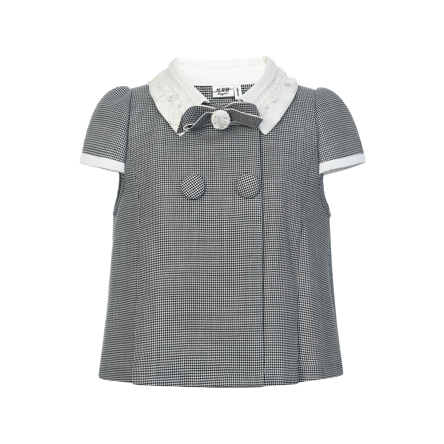 新款 lefame拉飞姆26夏季 蝴蝶结千鸟格小上衣女 Angelababy同款