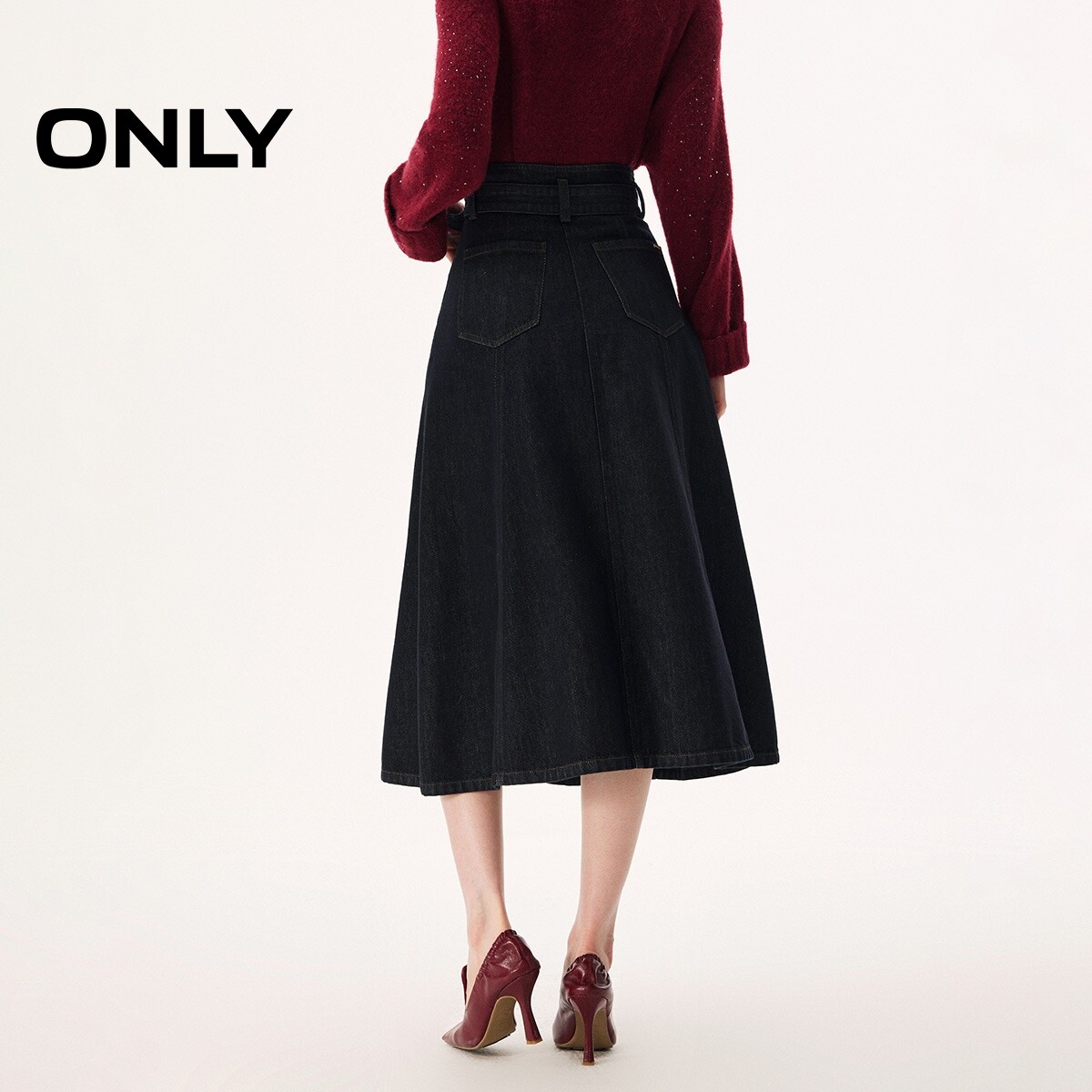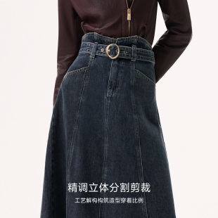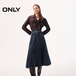 ONLY2026春季 复古质感水洗设计高腰A字中长裙牛仔裙半身裙女 新款