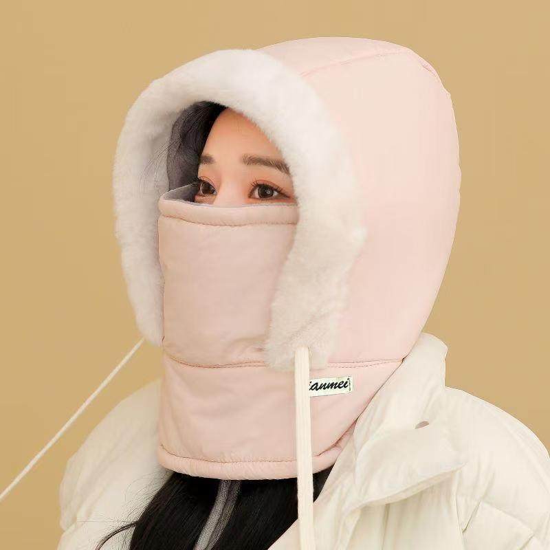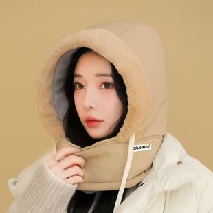 小熊帽子女冬季 围巾连帽一体保暖防寒口罩围脖骑行三件套2025新款