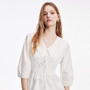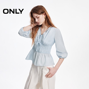 灯笼衬衫 含莱赛尔蝴蝶结收腰抽褶七分袖 上衣女 新款 ONLY2026春季