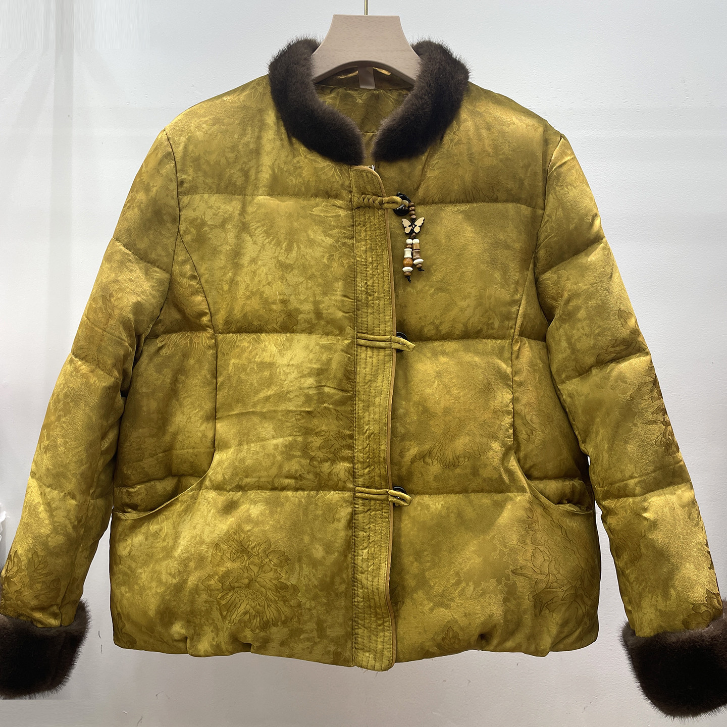 妈妈装 新款 气质百搭棉服棉袄外套 国风毛领盘扣棉衣女冬季 新中式