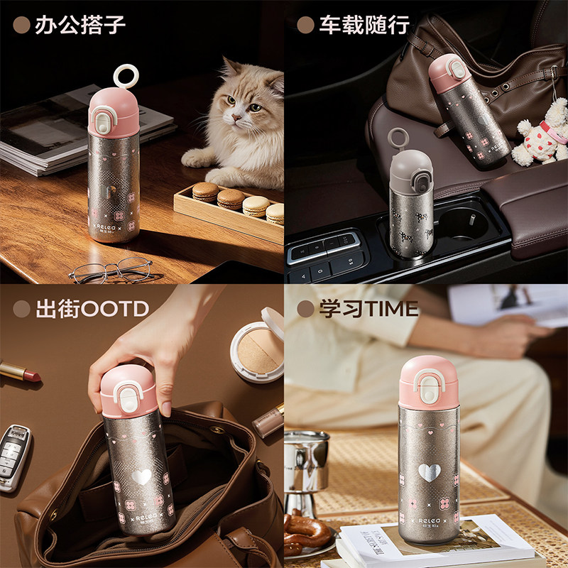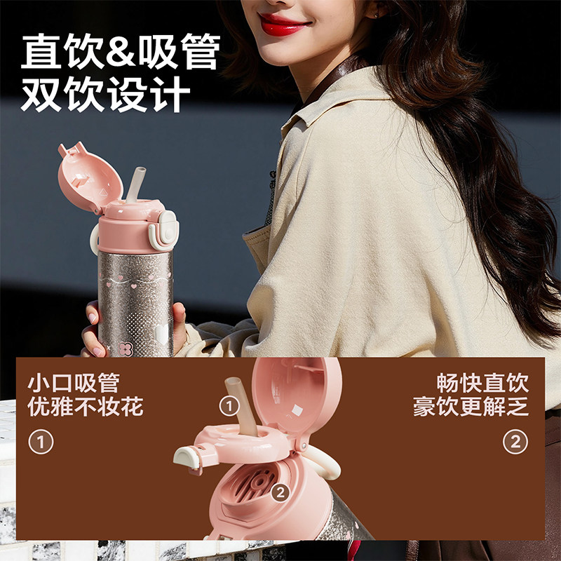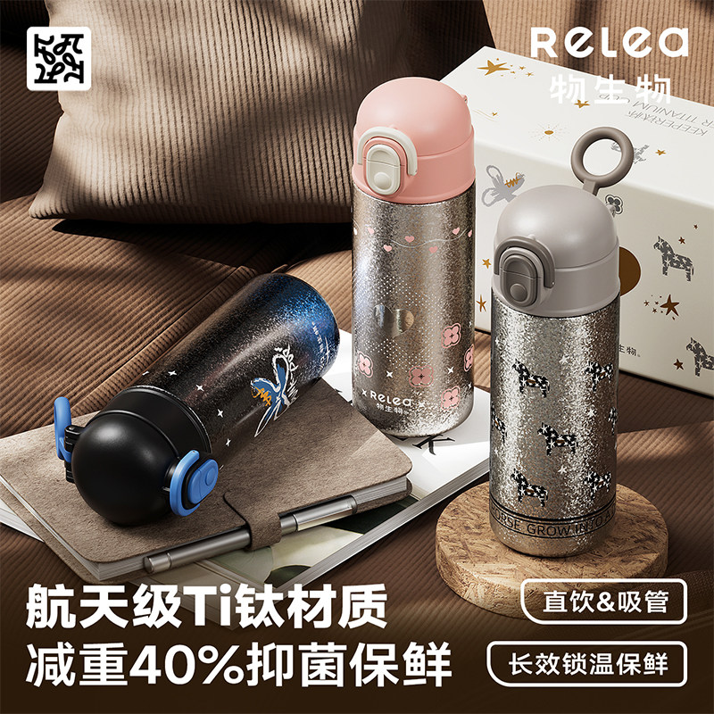 物生物纯钛保温杯女生新款 便携男小学生水杯儿童上学专用吸管杯子