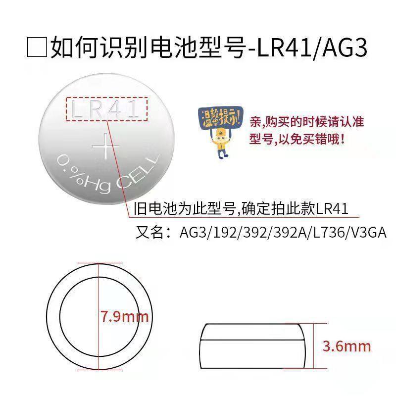LR41纽扣电池AG3家用体温温度计192发光耳勺灯392A激光笔电子L736