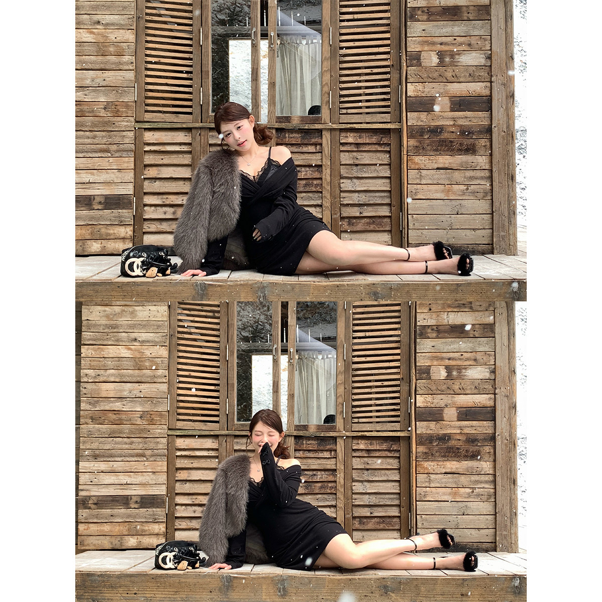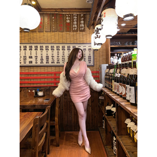 纯欲两件套装 安妮不火 钓系姐感V领磨毛针织包臀连衣裙女微胖大码