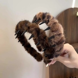 秋冬豹纹毛绒发箍女2025新款 高级感带齿洗脸头箍高颅顶发卡发饰