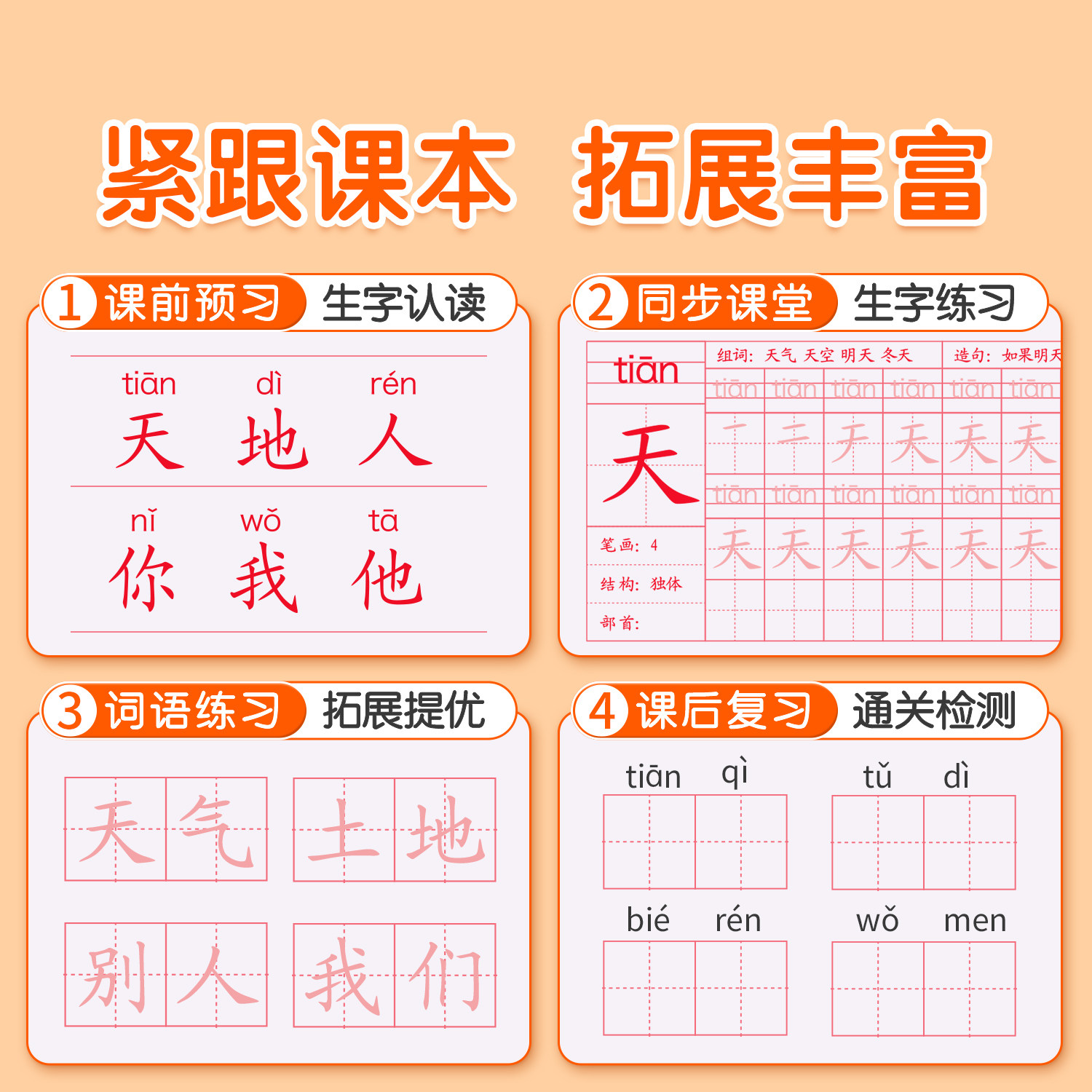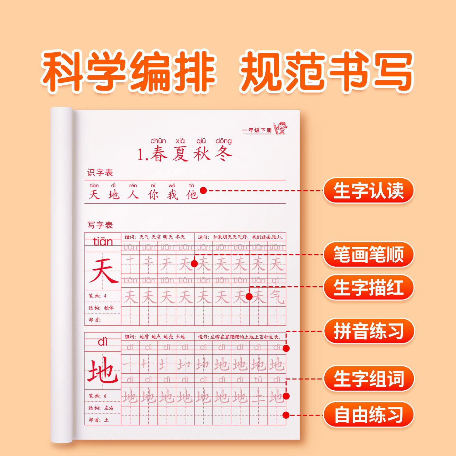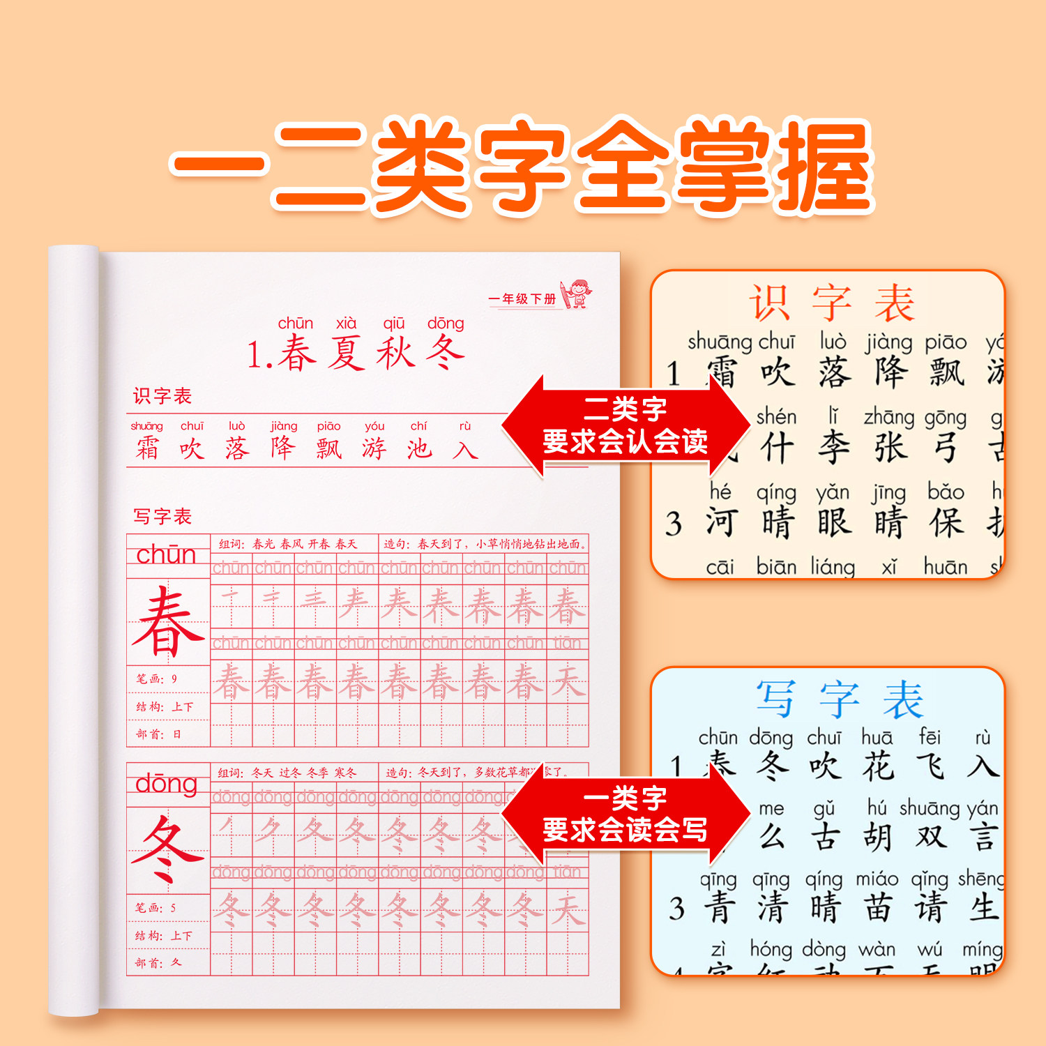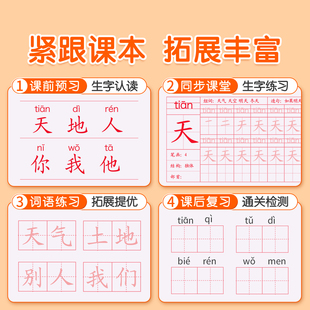 一年级生字练字字帖上册下册练字帖小学生专用人教版 课本同步二三四五六年级每日一练练字本语文描红笔画笔顺一二类字控笔训练楷书