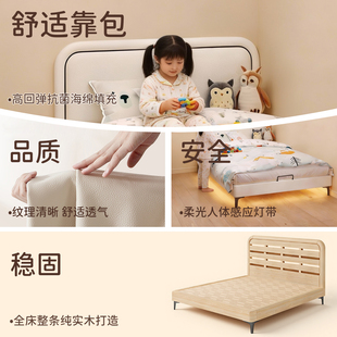 纯实木奶油风1.2米男孩软包儿童床小户型卧室女孩儿1.5米床可定制
