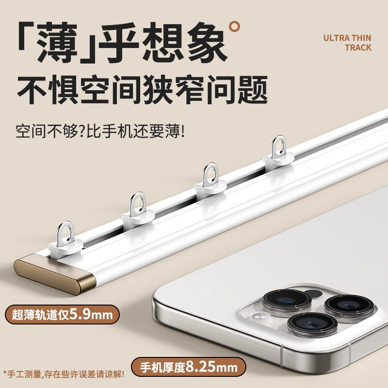 窗帘轨道免打孔滑轨侧装 自粘静音超薄导轨配件杆粘轨滑道滑轮 顶装