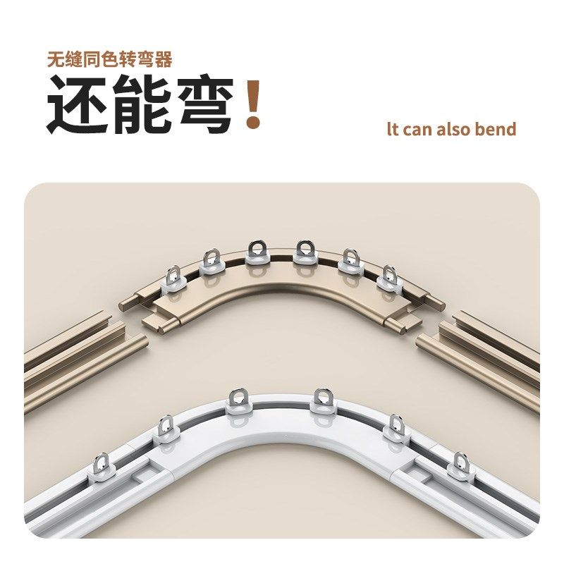 窗帘轨道免打孔安装 窗帘配件弯轨滑轮粘轨窗帘杆 滑轨静音超薄顶装