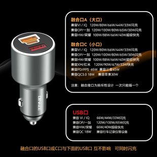 钉科120W车载充电器适用于VIVO一加闪充OPPO华为小米苹果快充车充
