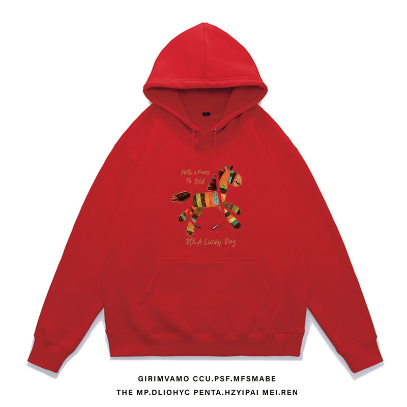 加绒加厚男装 马年酒红色本命年情侣衣服冬季 上衣 2026新款 卫衣男士