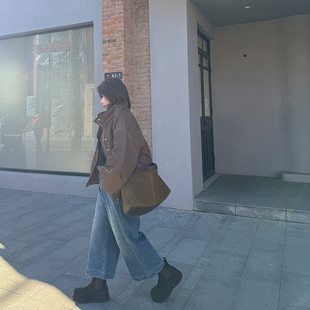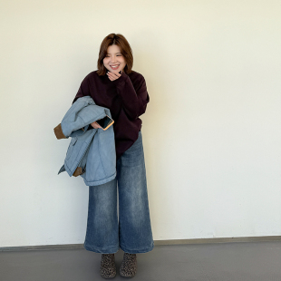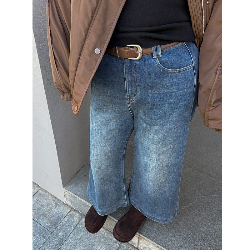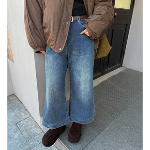 加绒显瘦显腿长牛仔裤 女装 子 木子理想大码 胖mm秋冬九分阔腿喇叭裤