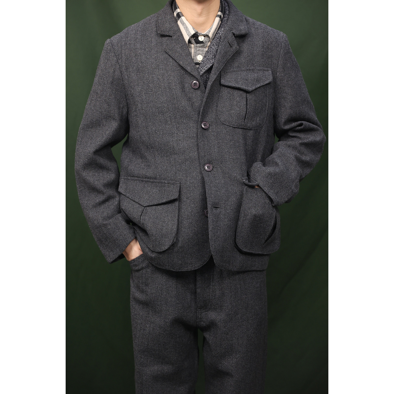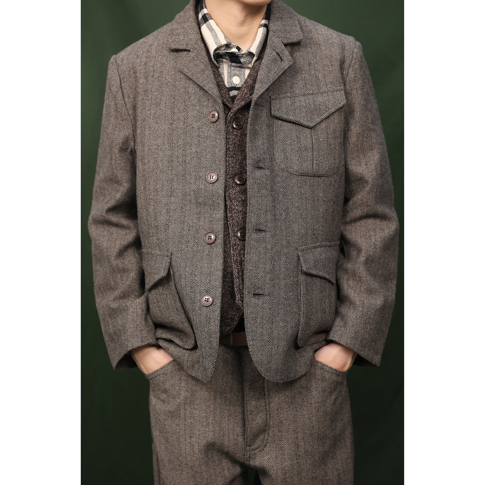 Suit 羊毛混纺休闲西装 猎装 复古人字纹 外套 JKT Wool