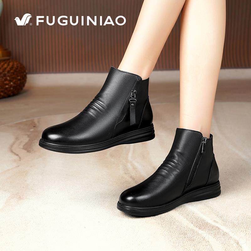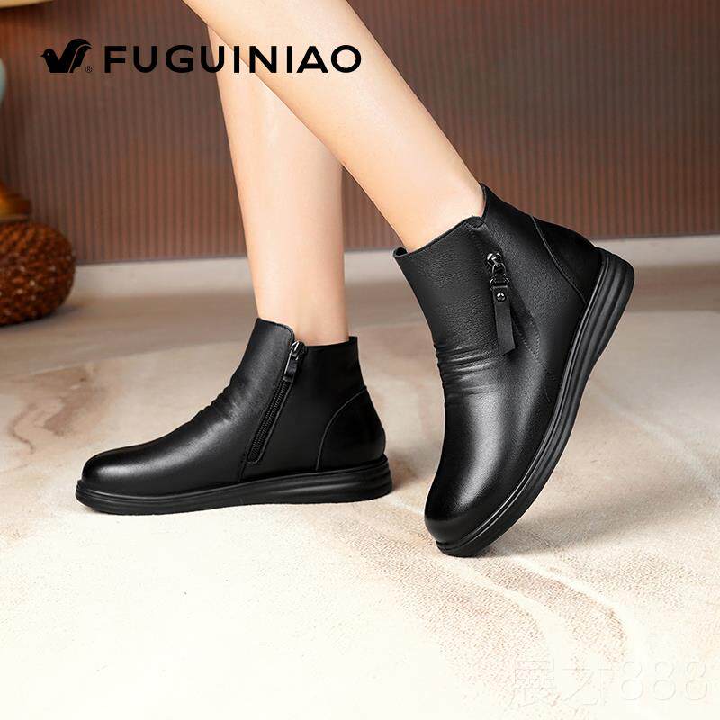 女冬季 正品 皮棉鞋 真鞋 防滑底短靴羊毛保暖皮中老 软富贵年鸟妈妈鞋