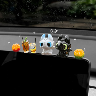 车内汽车饰品黑白小飞龙可爱公仔显示屏幕趴趴摆件车载中控台玩偶