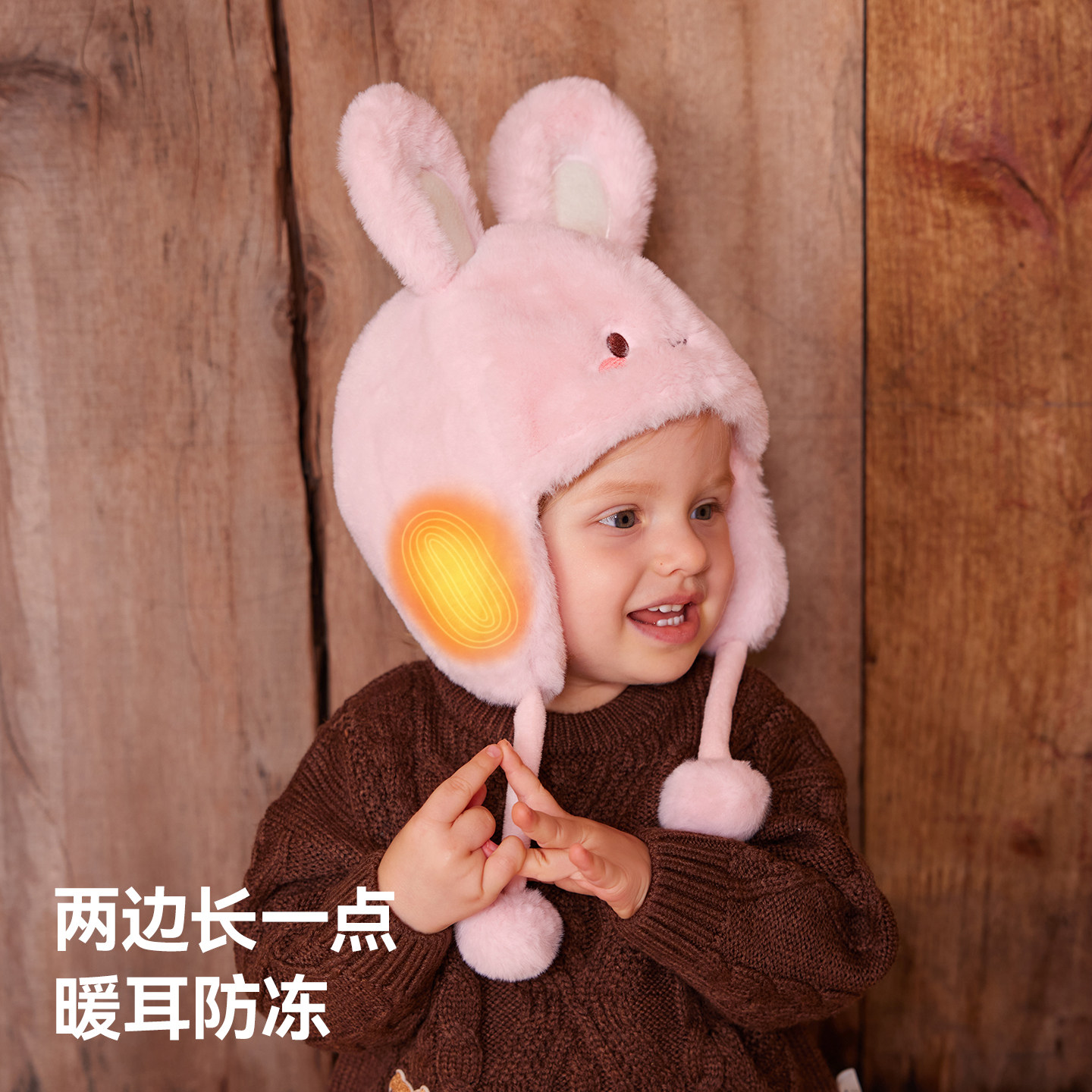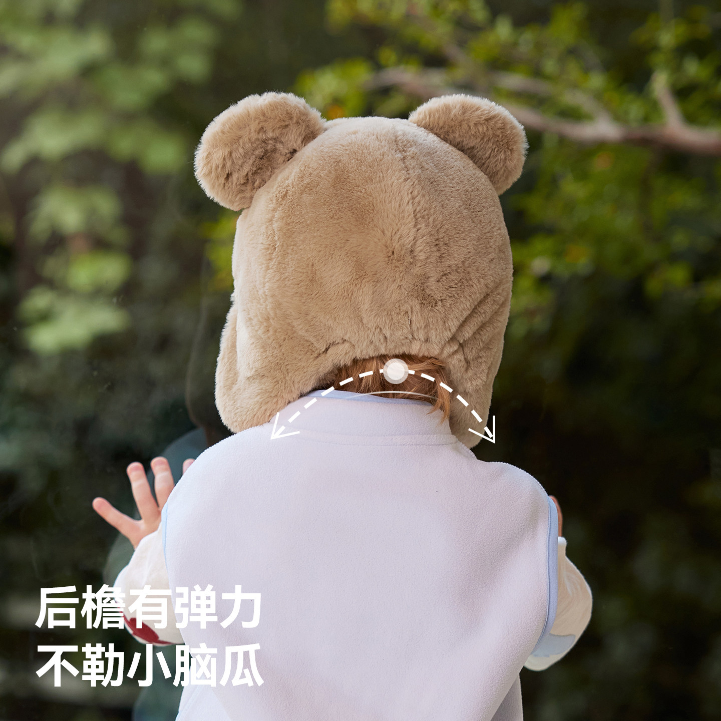 贝肽斯宝宝帽子冬季 男童女孩加绒加厚围巾防风保暖外出毛绒护耳帽