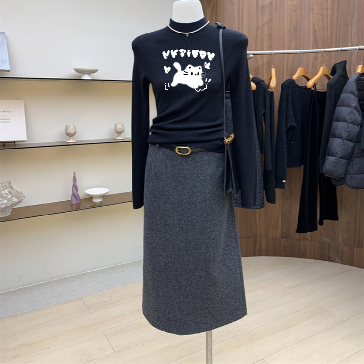 洋气时尚 高领毛衣女2023秋冬百搭内搭修身 显瘦上衣黑色针织打底衫
