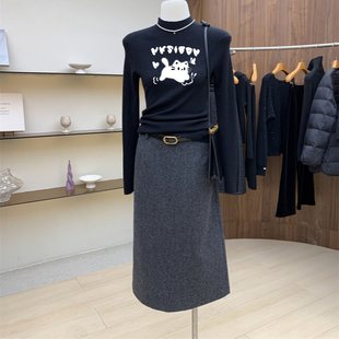 气质长袖 Maven 女秋冬修身 羊毛100%半高领打底衫 针织内搭上衣 Lin
