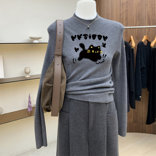 套头上衣秋冬新款 十一石 毛衣女长袖 圆领羊毛针织衫 极简实穿