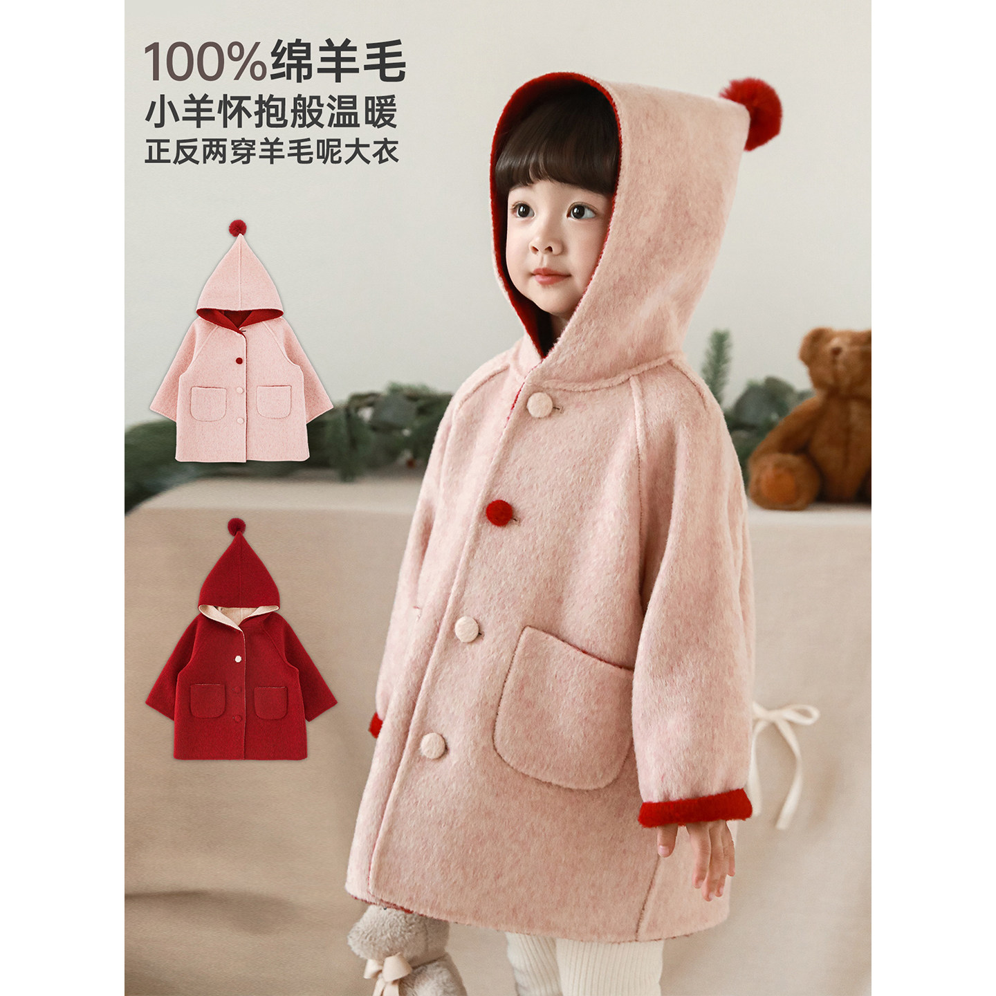 毛呢外套 jk原创日系学院风正肩牛角扣大衣加厚中长款 阿车家 大码