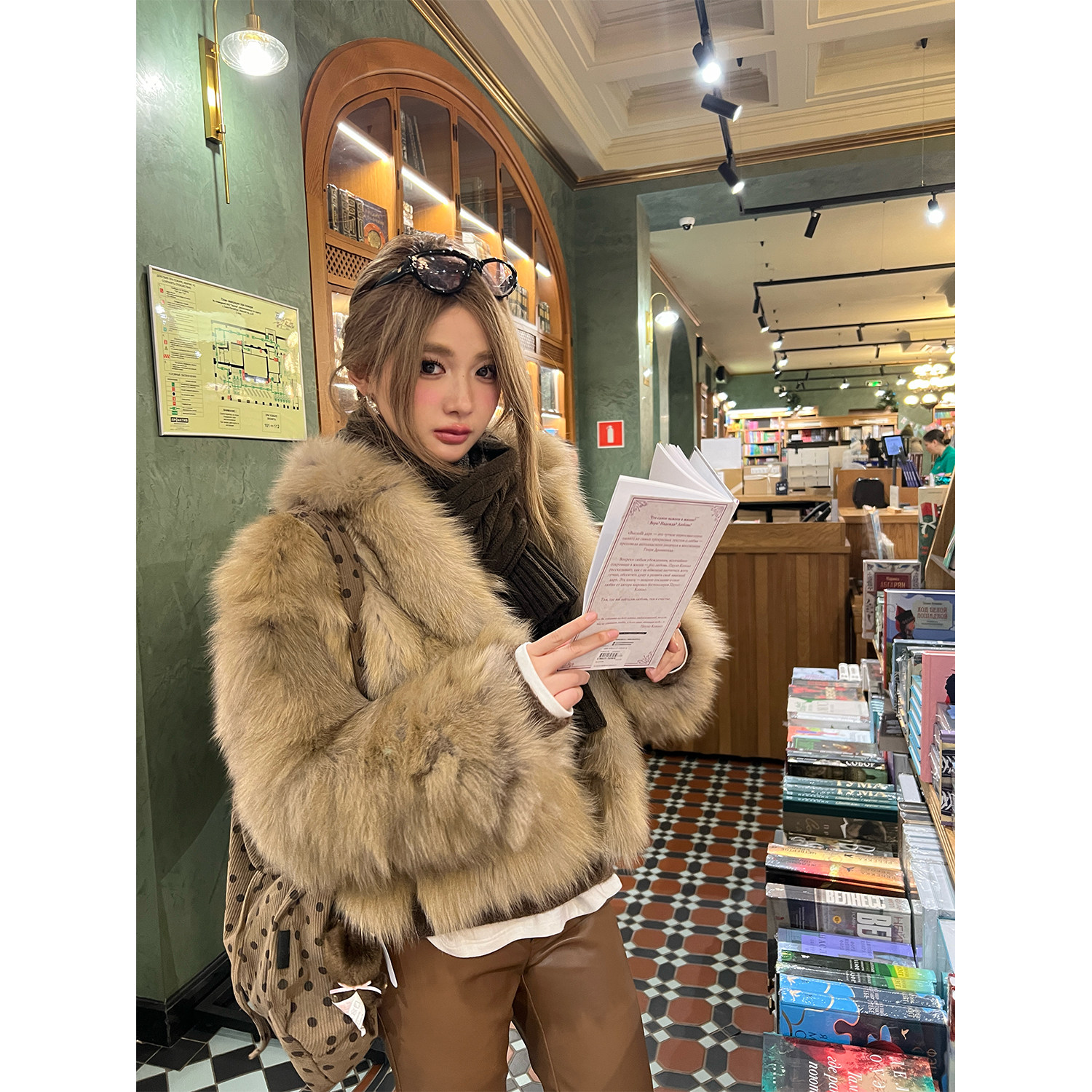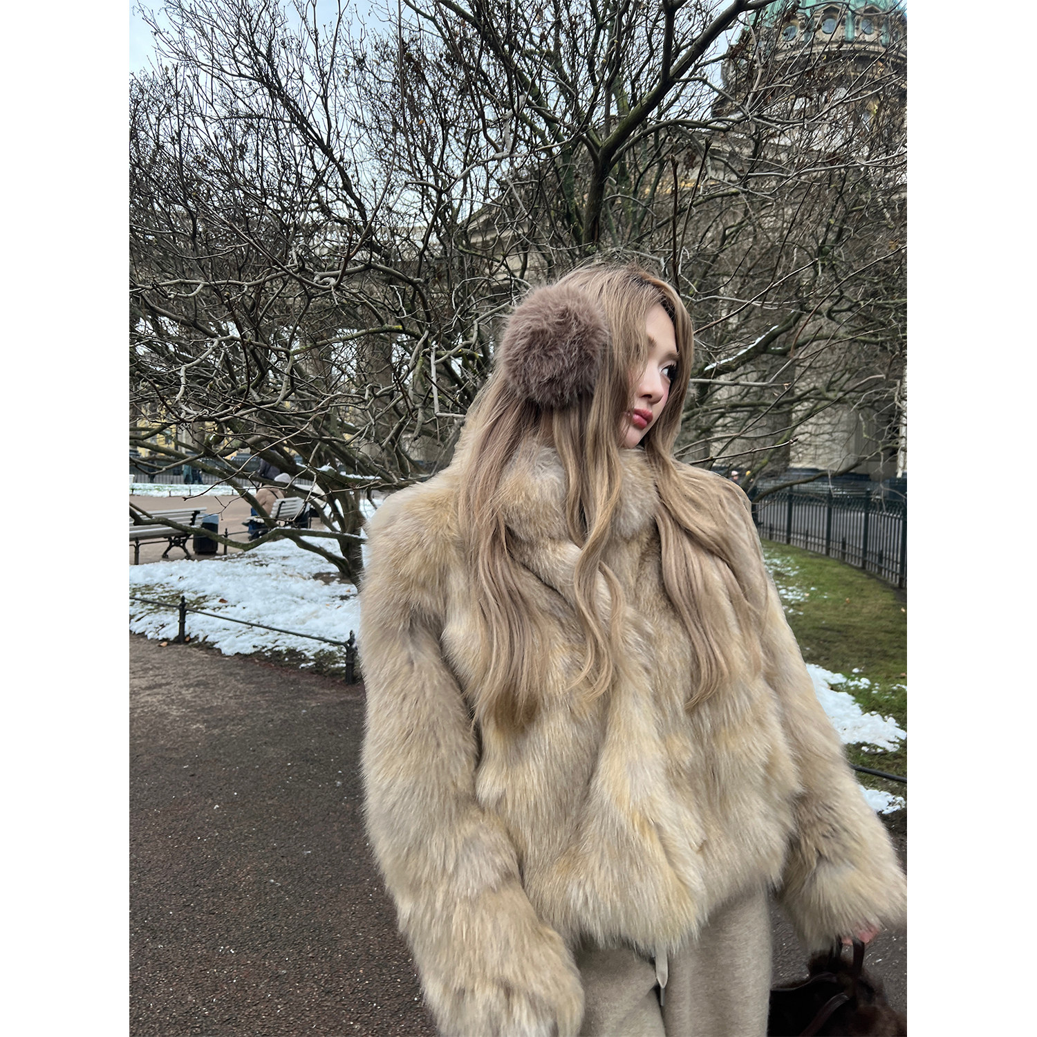 CulturE小众轻奢防貂毛毛绒加厚外套金属设计感宽松纯色短款 皮草