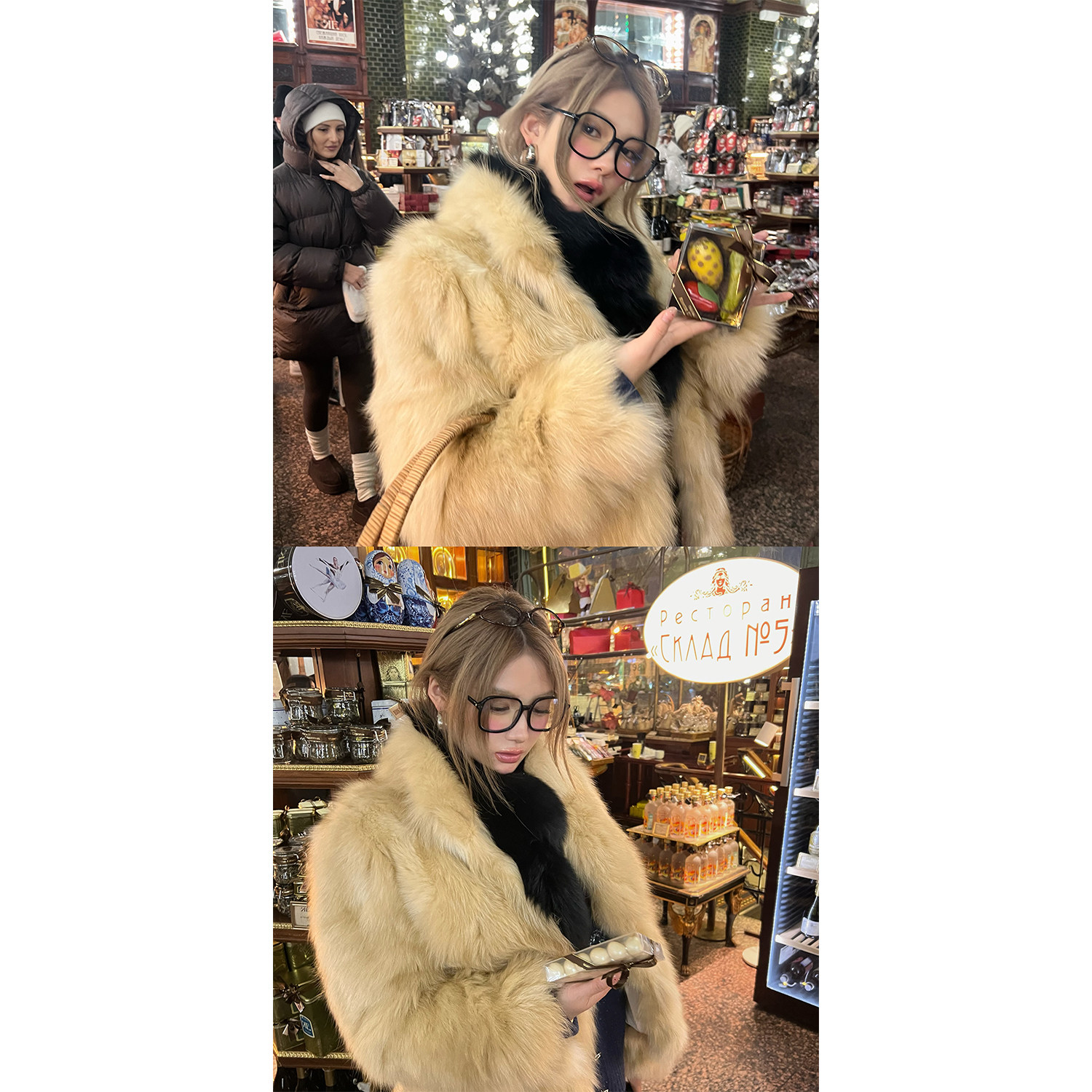 Ashy 以假乱真仿狐狸毛晕染环保皮草层次感正肩立领 Snow首尔月光