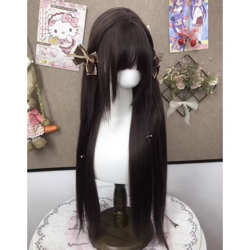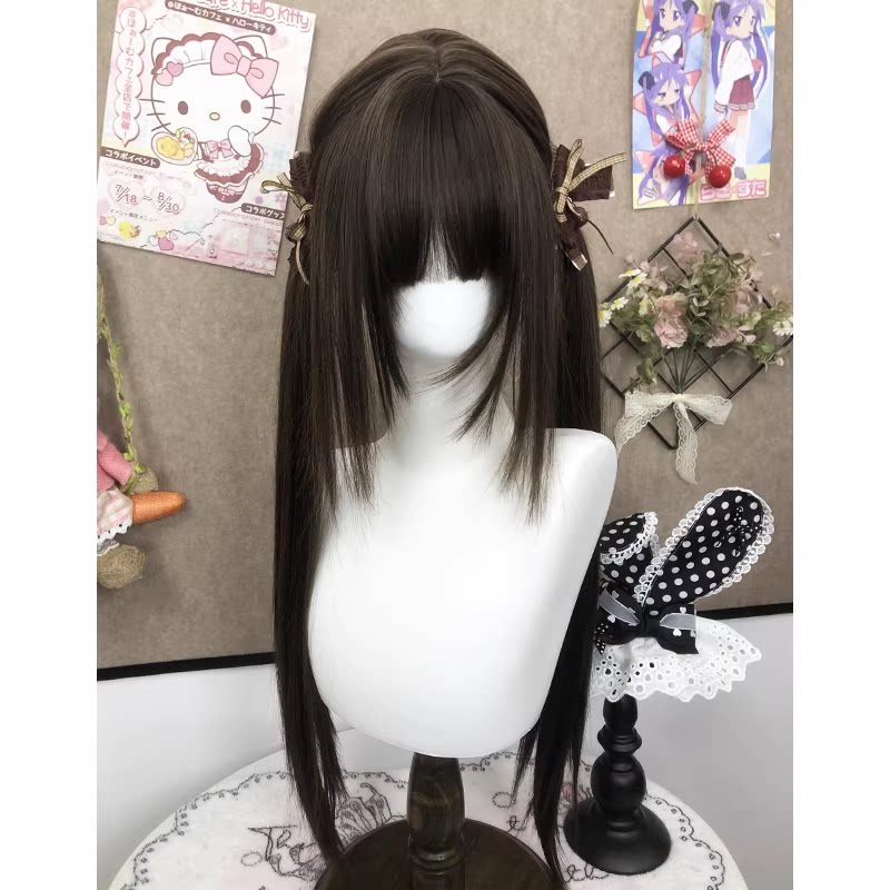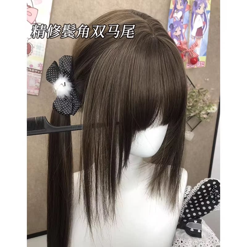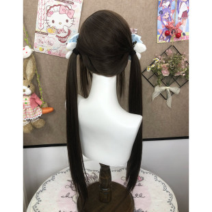 001精修鬓角款 假发女长发双马尾长直假发套全头套 耶耶兔假发