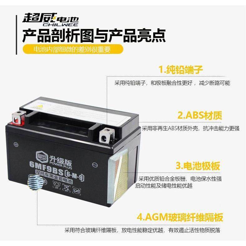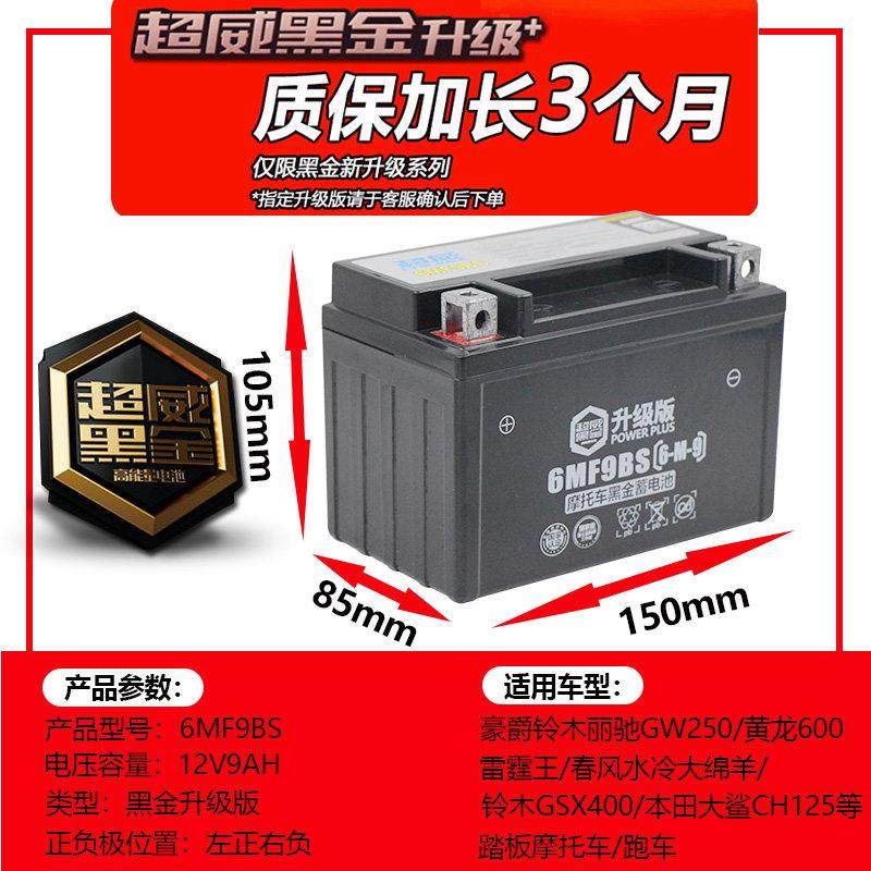 超威摩托车12V9a电瓶gw250黄龙600xjr400通用免维护蓄电池YTX9