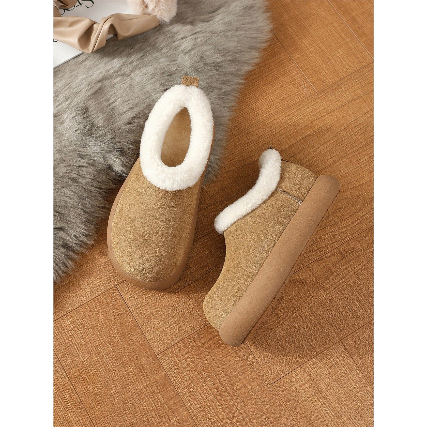 雪地靴毛毛鞋 骆驼x奈娃联名勃肯鞋 加绒保暖厚底时尚 新款 2025冬季