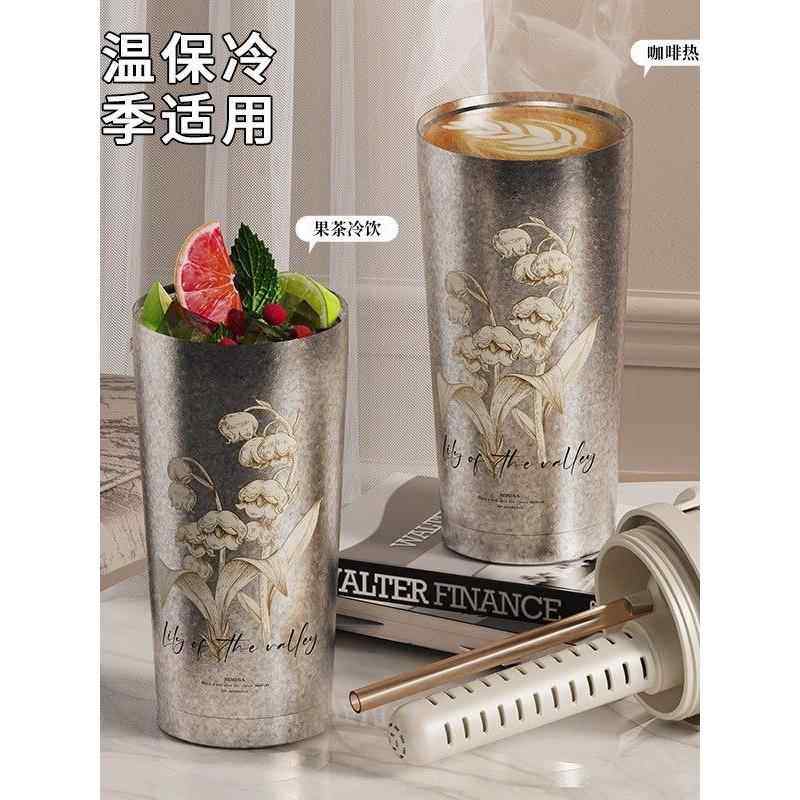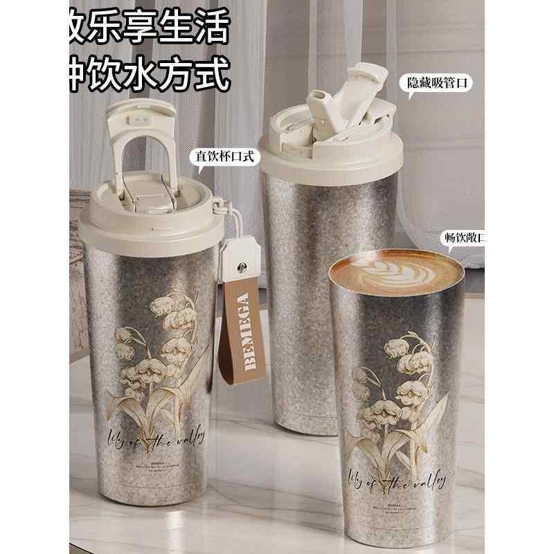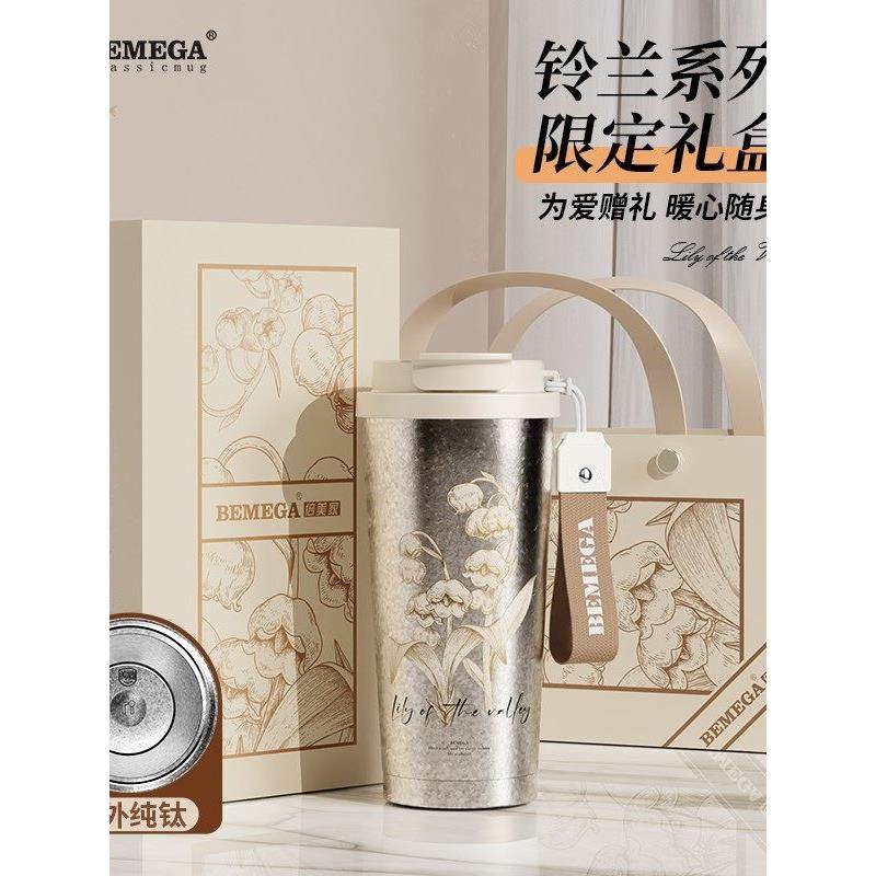 英国Bemega纯钛铃兰花保温杯女士男款 高颜值水杯子 咖啡杯2025新款