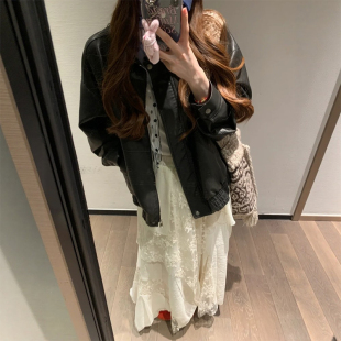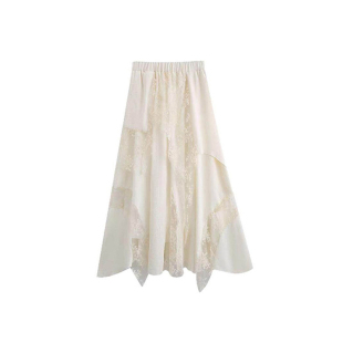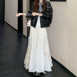 不规则蕾丝拼接白色半身裙女春季 重工伯克利镂空网纱蛋糕长裙 大码