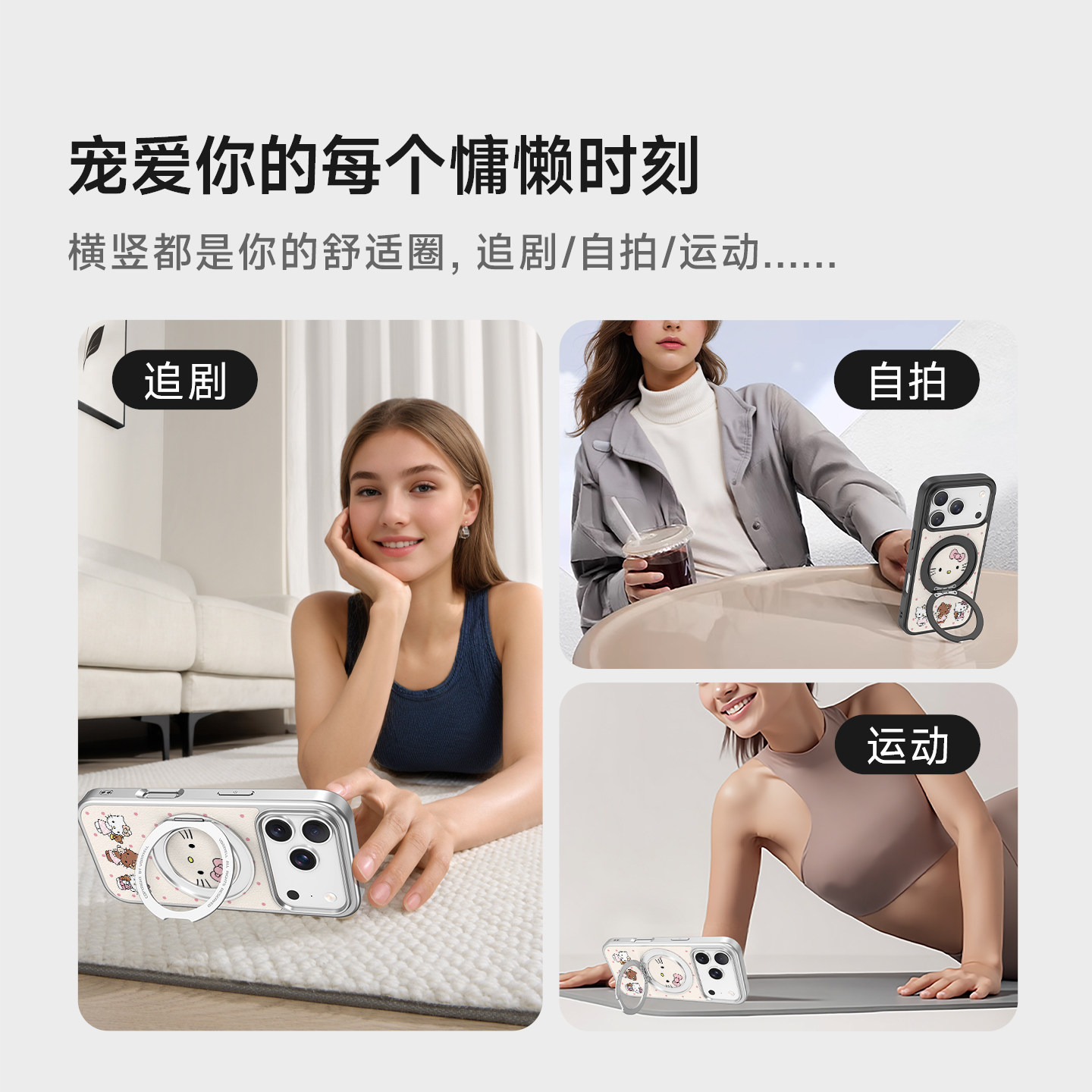 HelloKitty适用苹果17promax手机壳iPhone16pro新款 高级感小众15银色边框磁吸带支架14卡通可爱13皮质ins风女