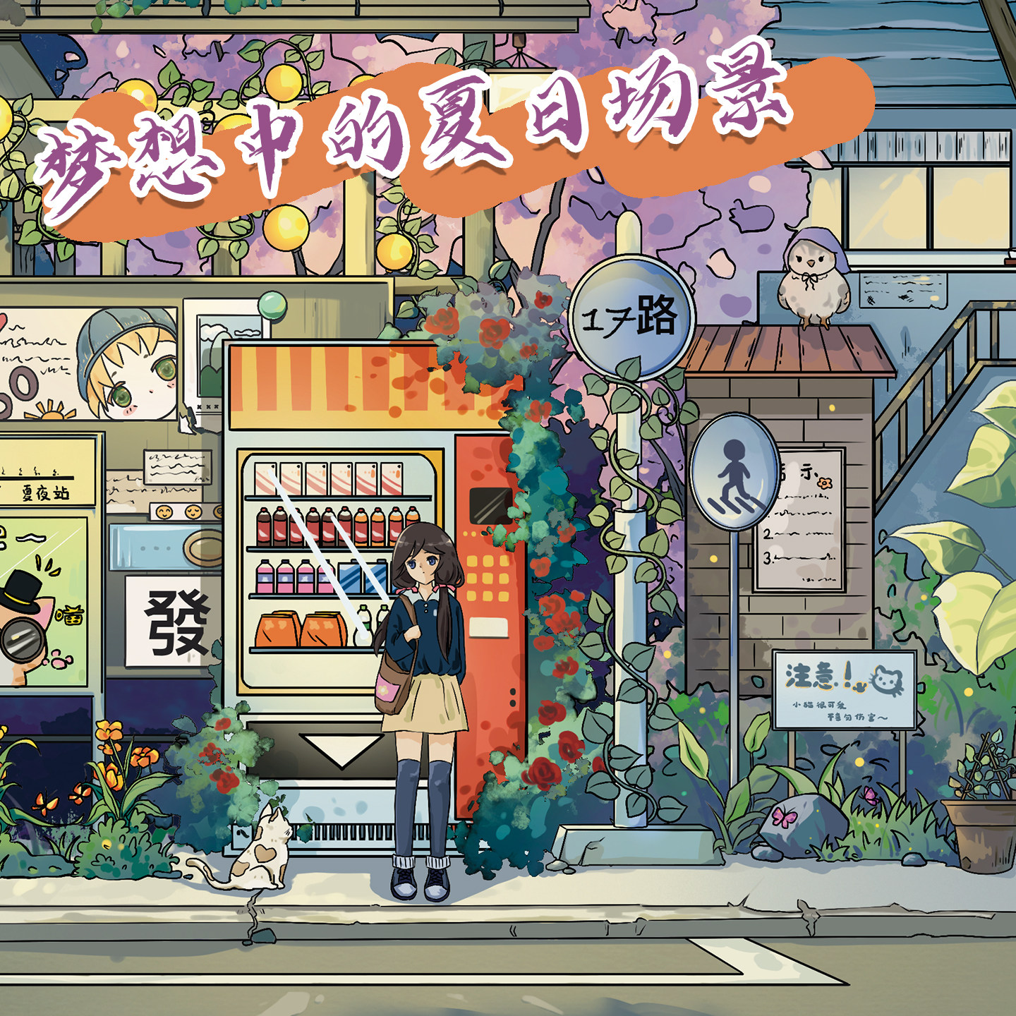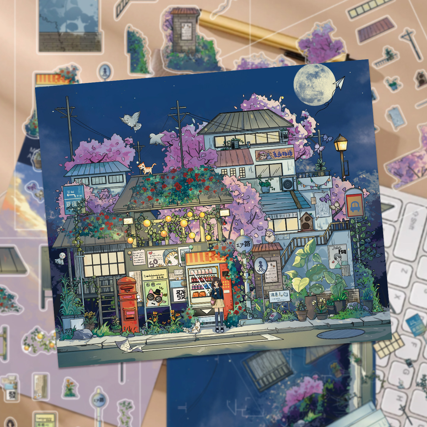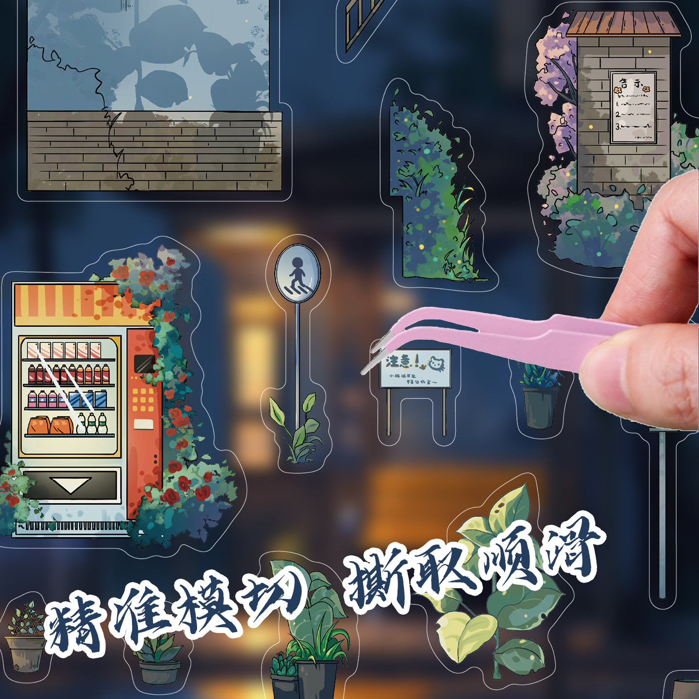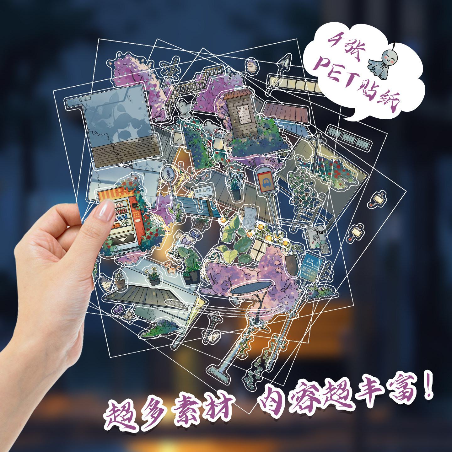 拾乐造景贴纸夏夜公交站场景唯美静谧二次元 场景治愈系造景拼贴贴纸 贴纸3D立体建造自己梦想