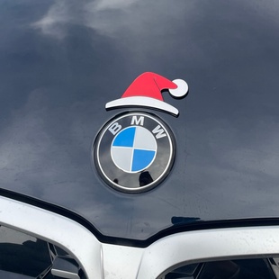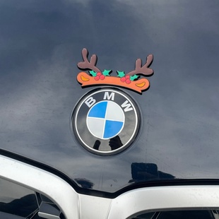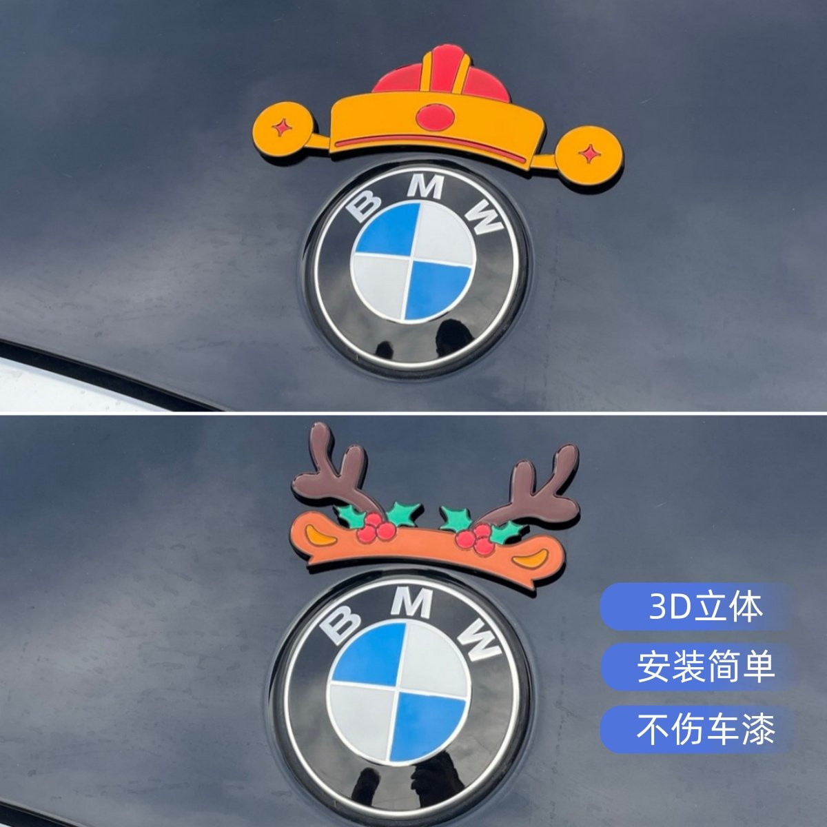宝马3D立体车贴鹿角发财圣诞帽子汽车改装 饰适配所有车型车标贴 装