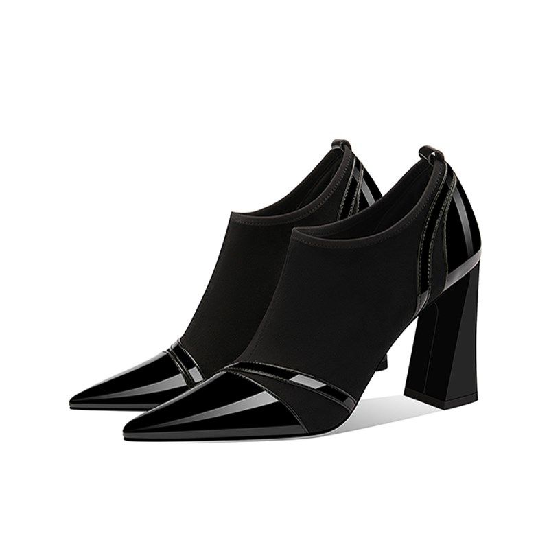 百搭尖头高跟单鞋 黑色女鞋 子 2025秋冬新款 舒适柔软真皮粗跟深口鞋