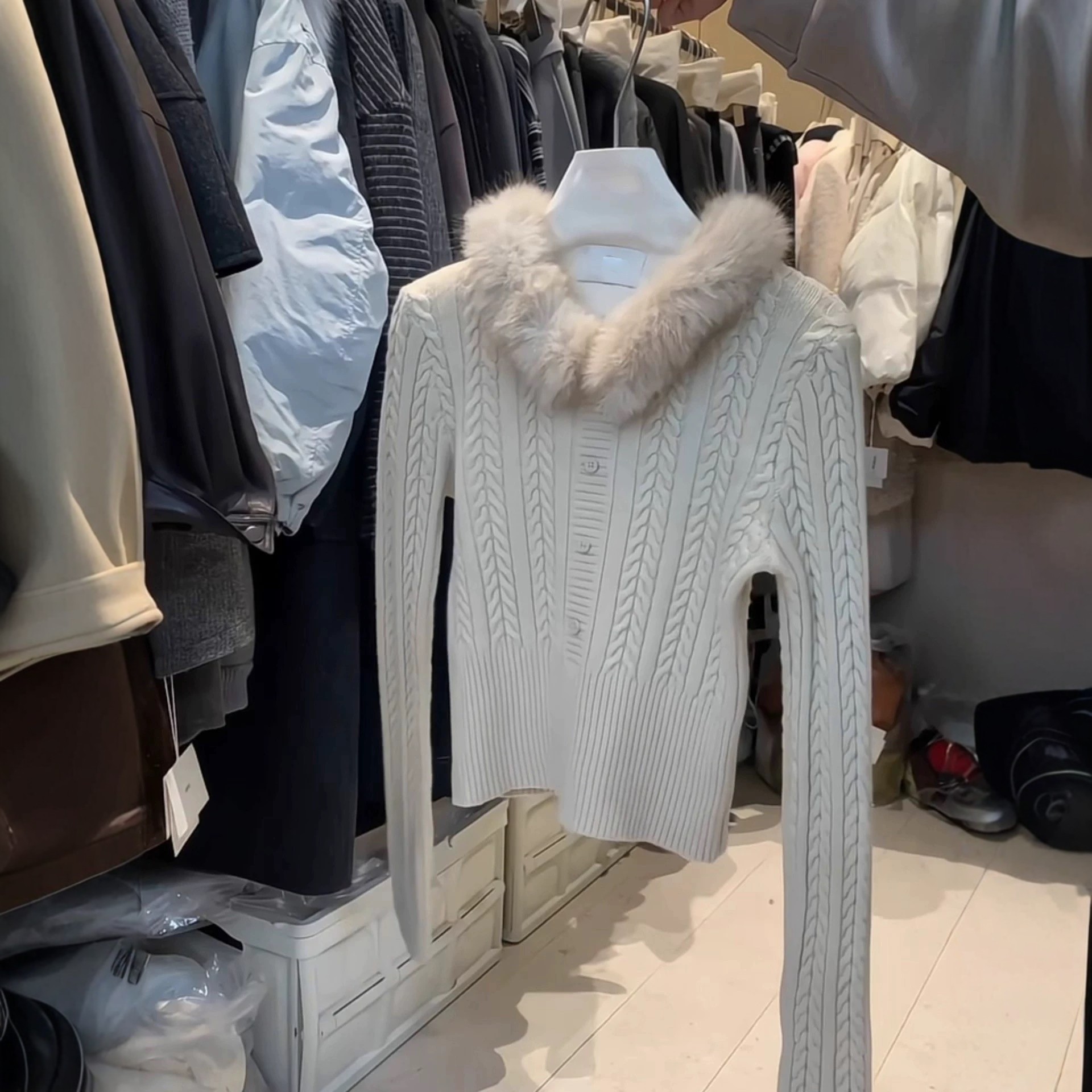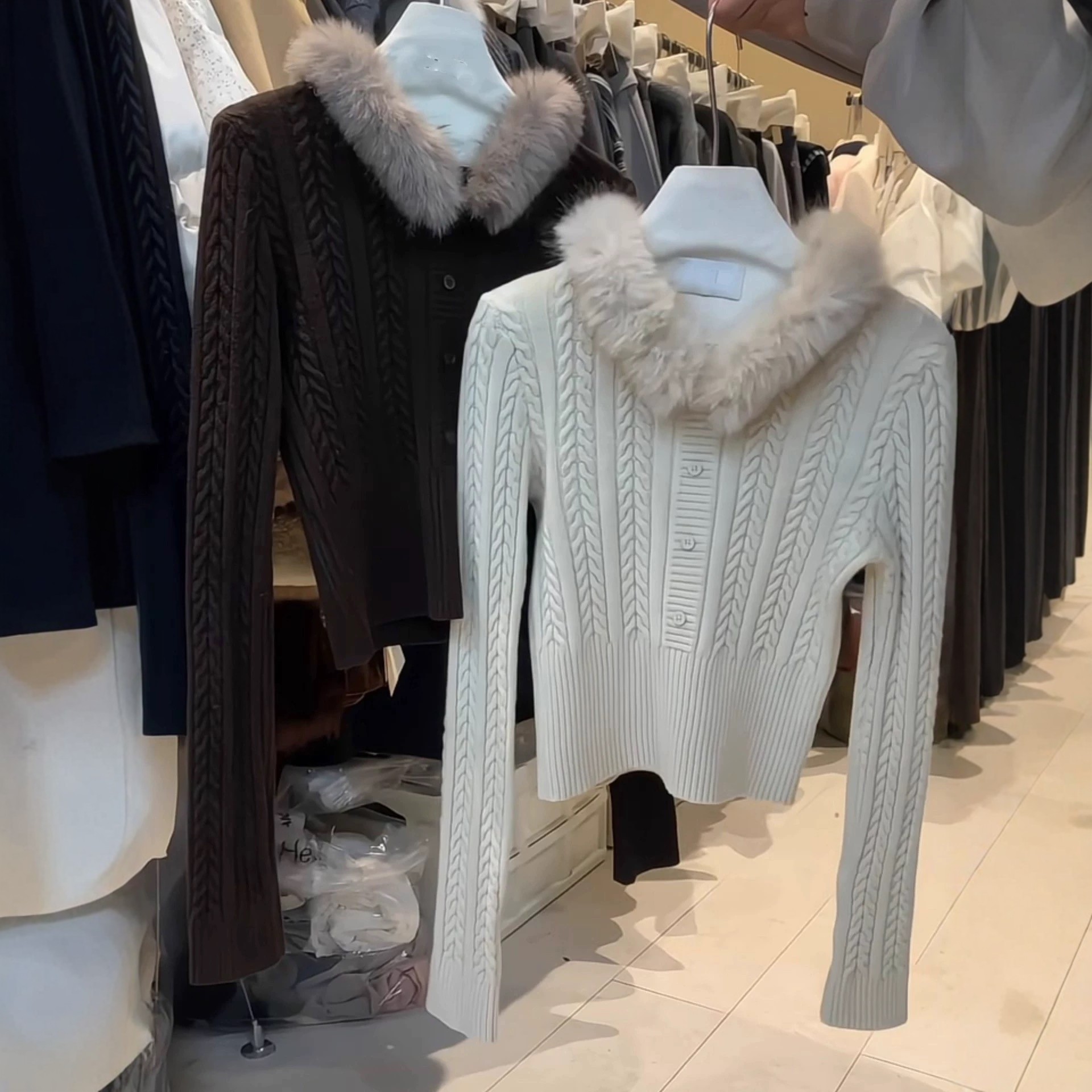 收腰打底毛衣内搭小个子 设计感修身 毛领麻花针织衫 女2025秋冬新款