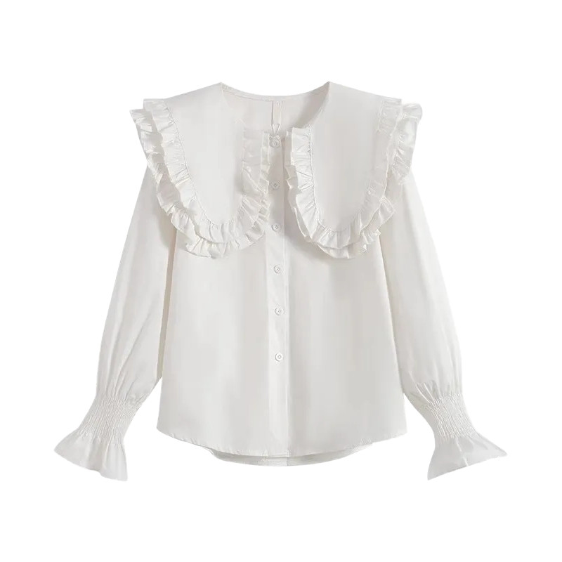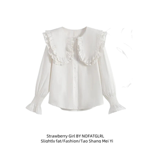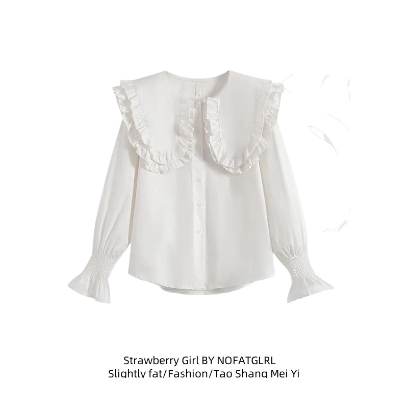 秋冬宽松显瘦泡泡袖 衬衫 衬衣女 学院风大片双层娃娃领设计长袖 大码