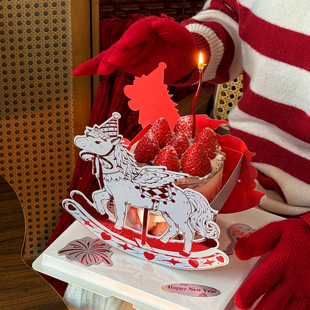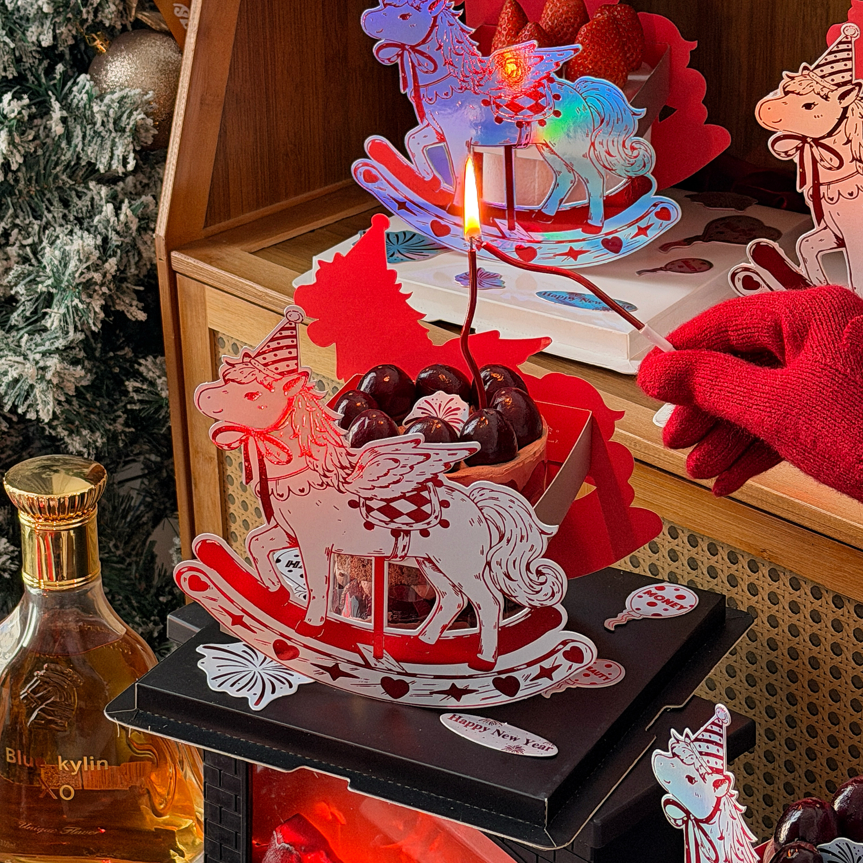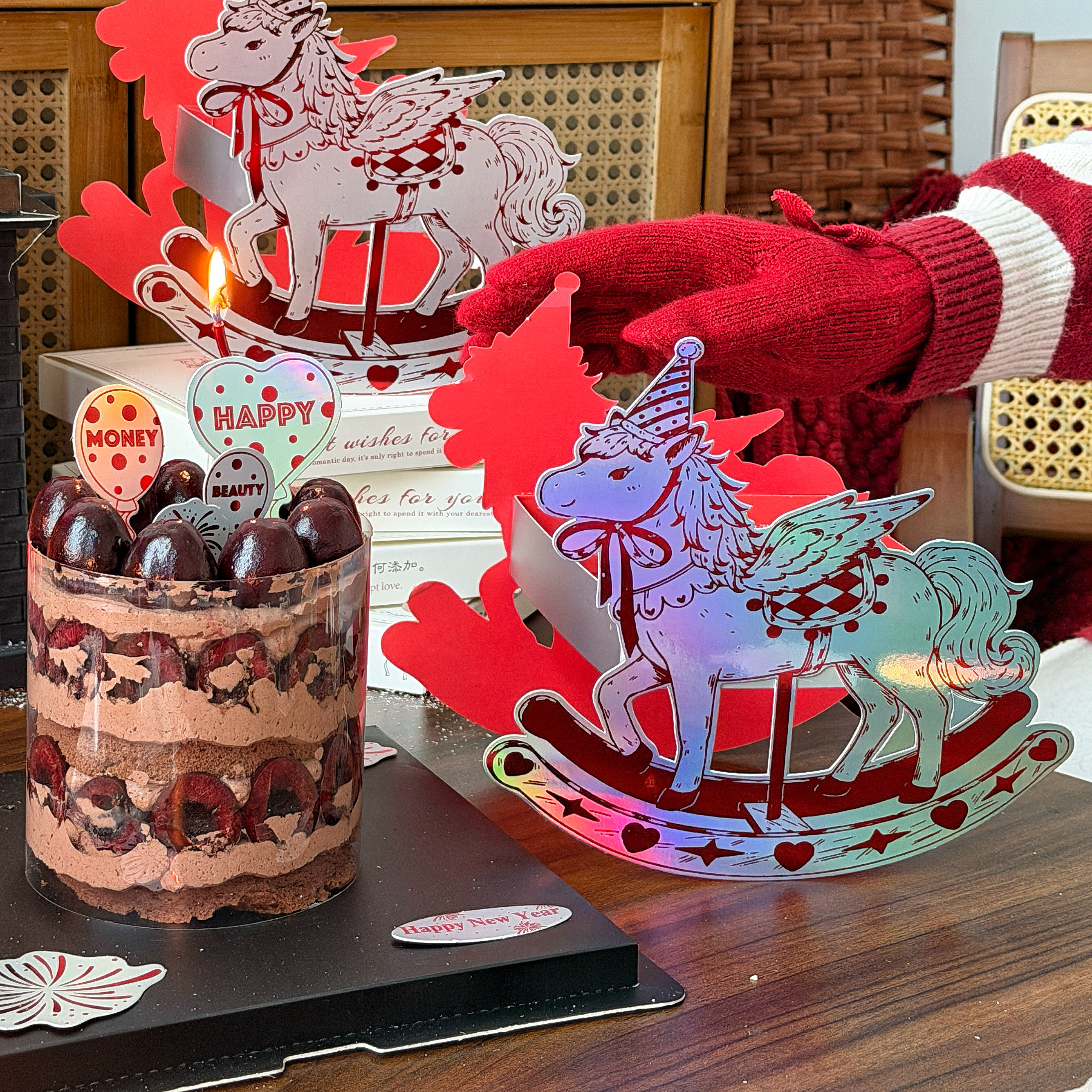 抱抱酱原创版 饰摆件烘焙配件 权2026新年跨年幻彩镭射摇摇马蛋糕装