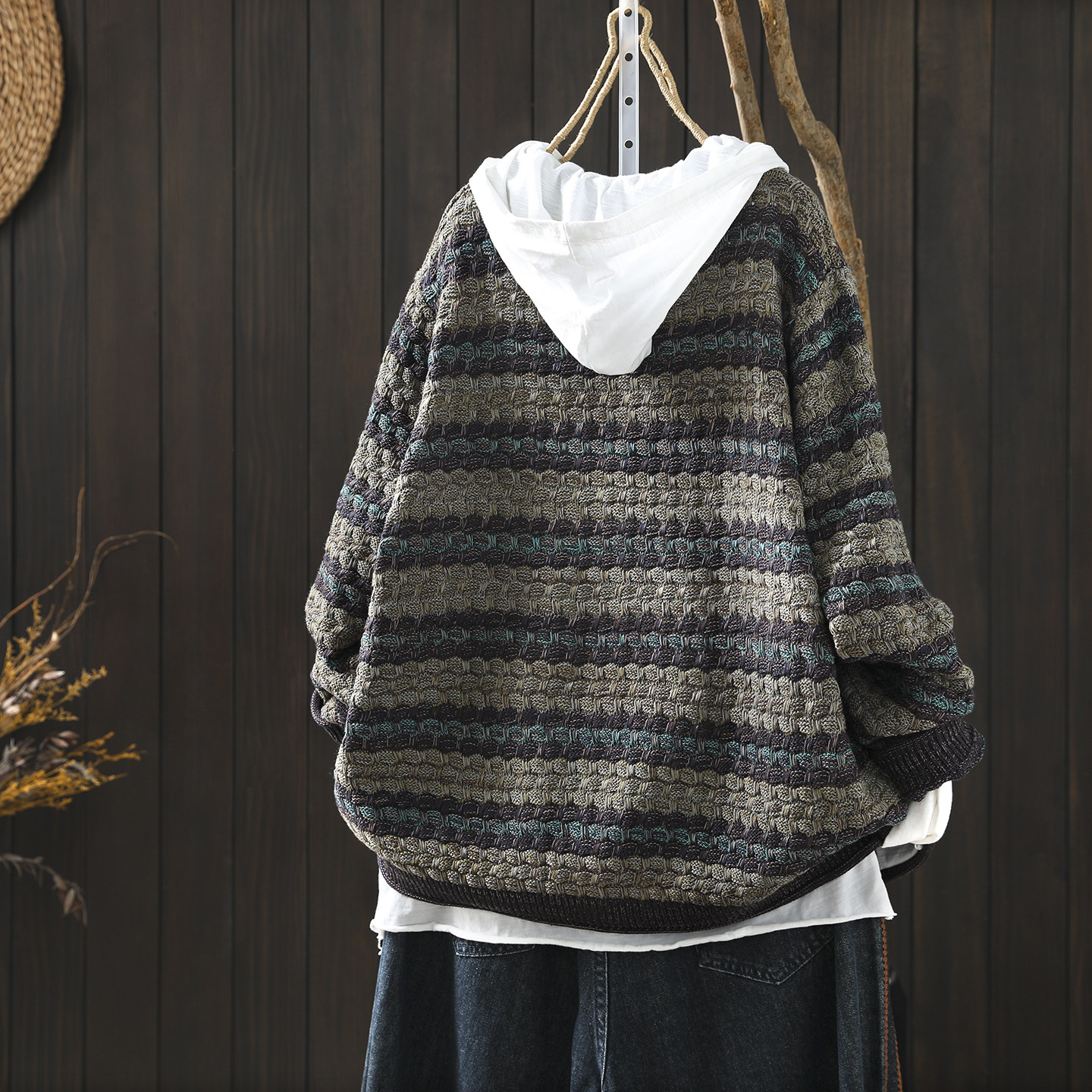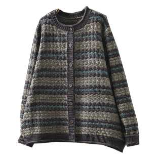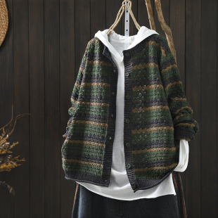 复古条纹棉线针织休闲轻熟开衫 独特漂亮巨好看上衣女春季 2026新款