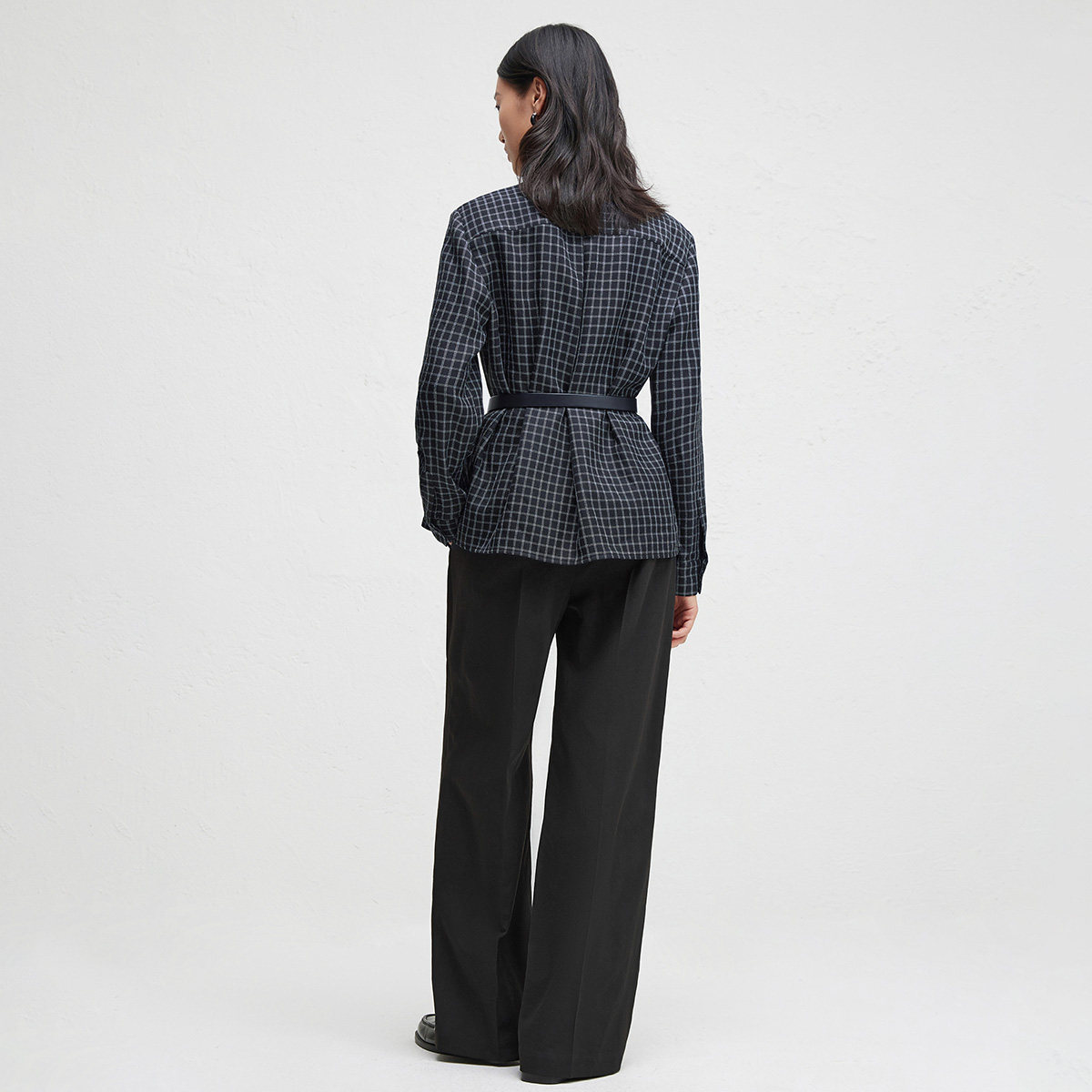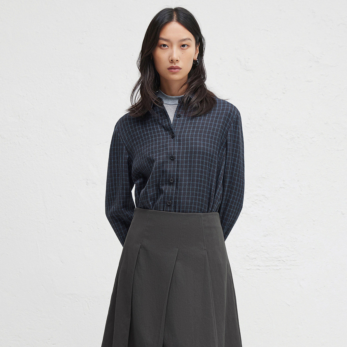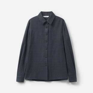衬衫 秋季 纯棉磨毛长袖 薄款 女宽松显瘦休闲百搭方领衬衣上衣 新款