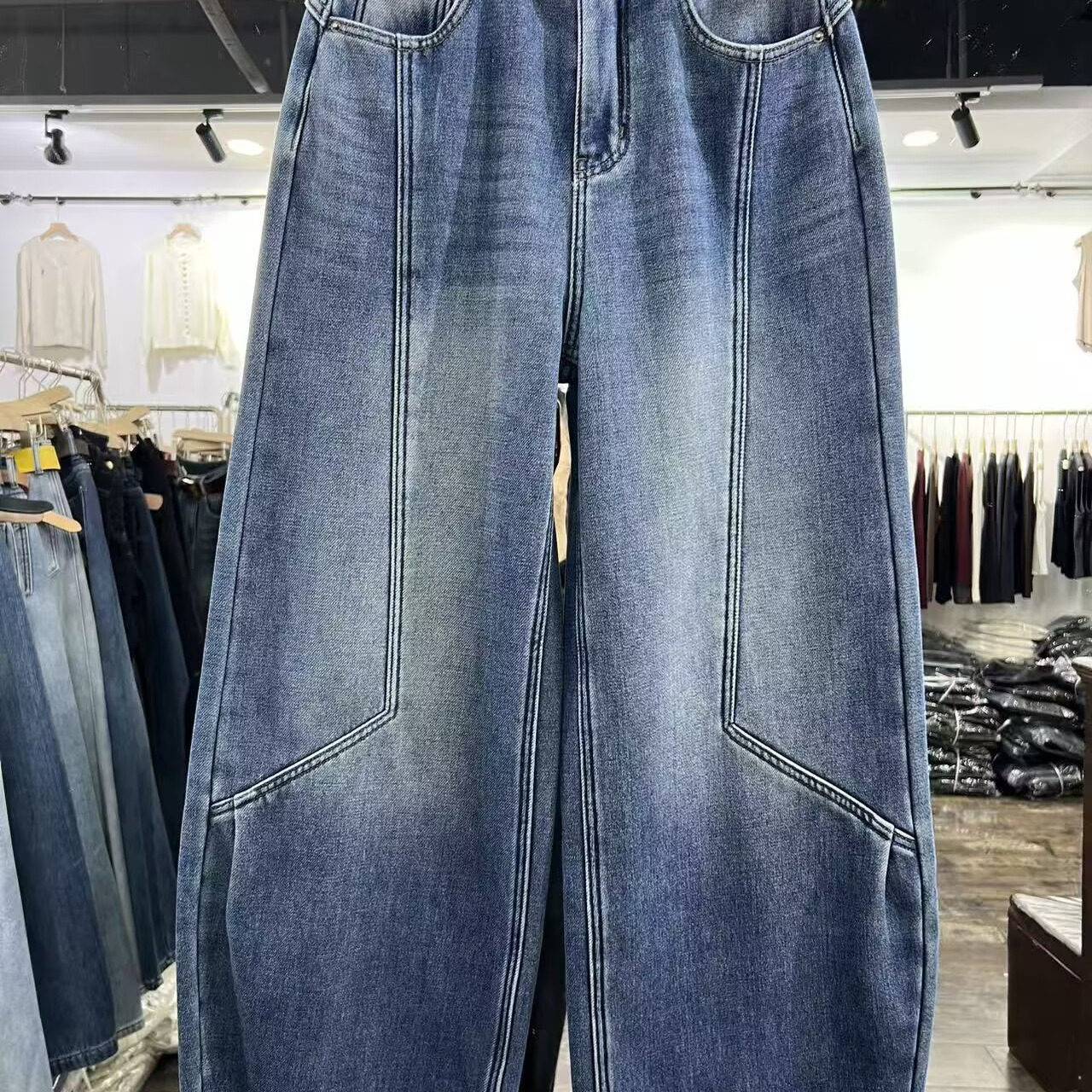 高腰宽松显瘦百搭休闲弯刀裤 新款 世1.04 女冬季 加绒加厚阔腿牛仔裤