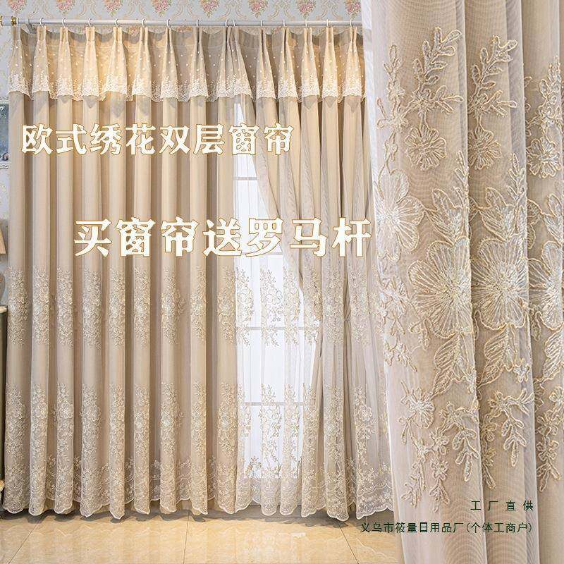 帘欧窗遮光式 窗帘杆一整套室客厅轻奢布纱一体双层161卧2025新款