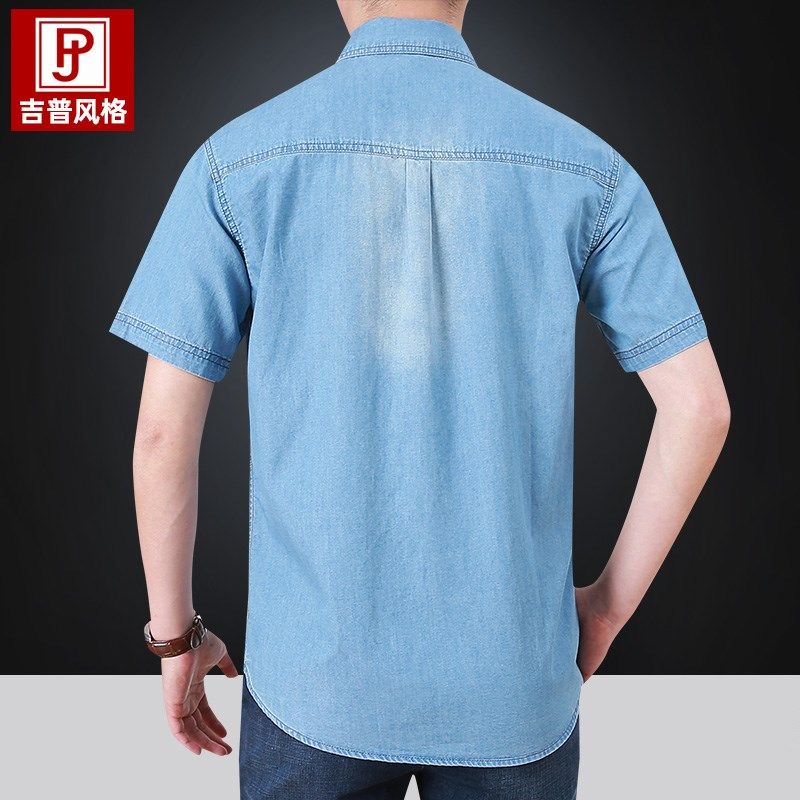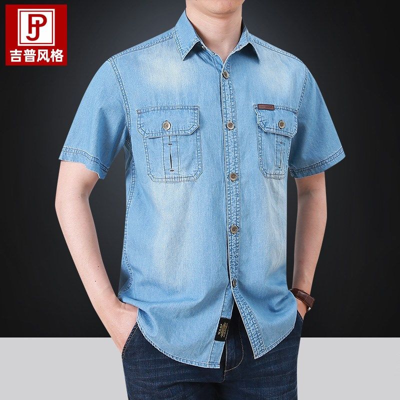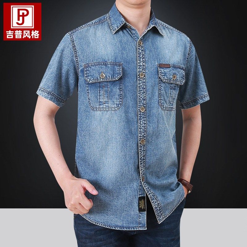 V37日系复古原牛水洗牛仔衬衫 潮牌cityboy宽松休闲衬衣外套 男冬季