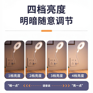梵点人工智能语音台灯控制灯usb声控灯感应灯led小夜灯学习帮手一体床头灯插电既可声控唤醒方便专用夜间充电