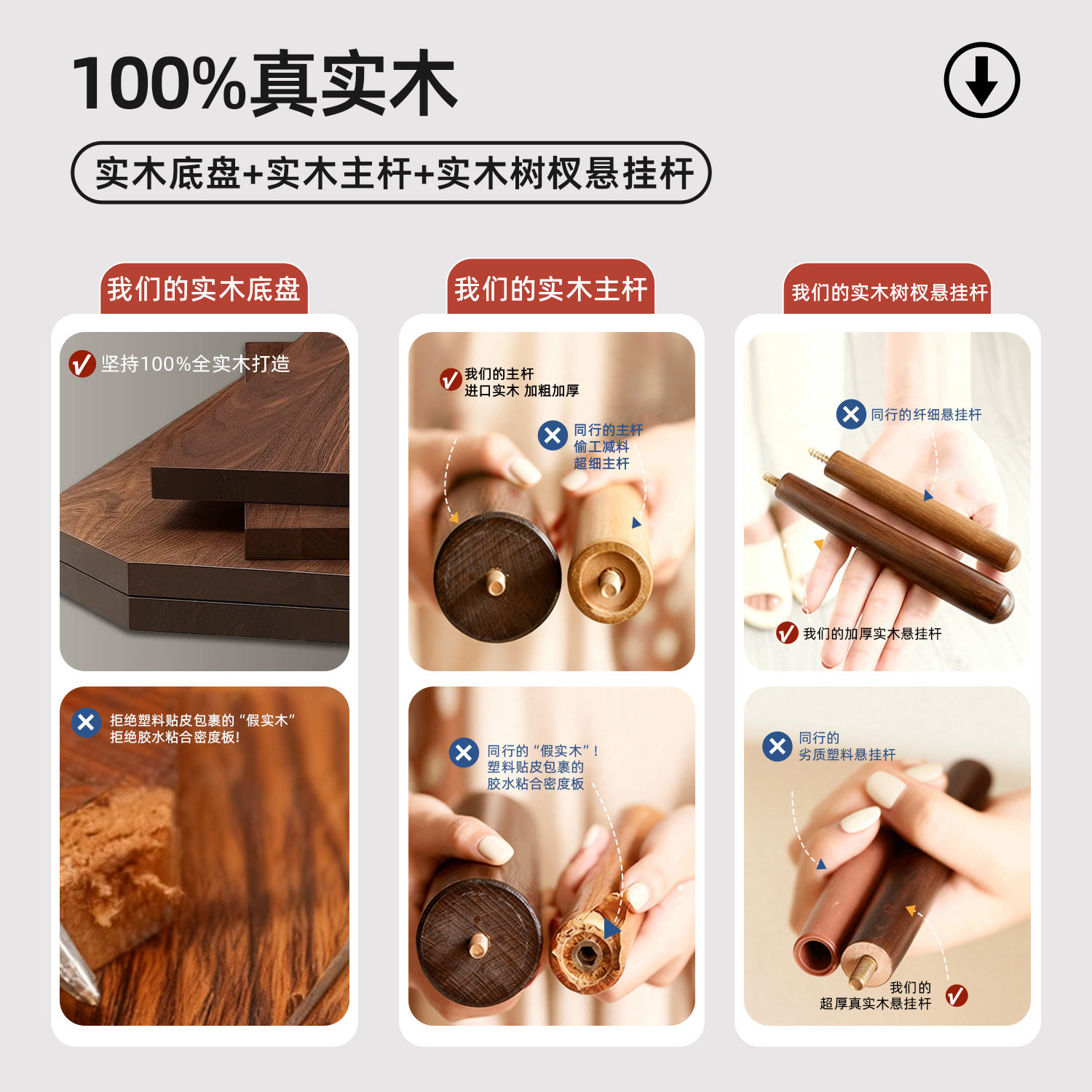 实木胡桃木质落地卧室挂衣架意式 榉木衣帽架 简易衣服挂架客厅立式