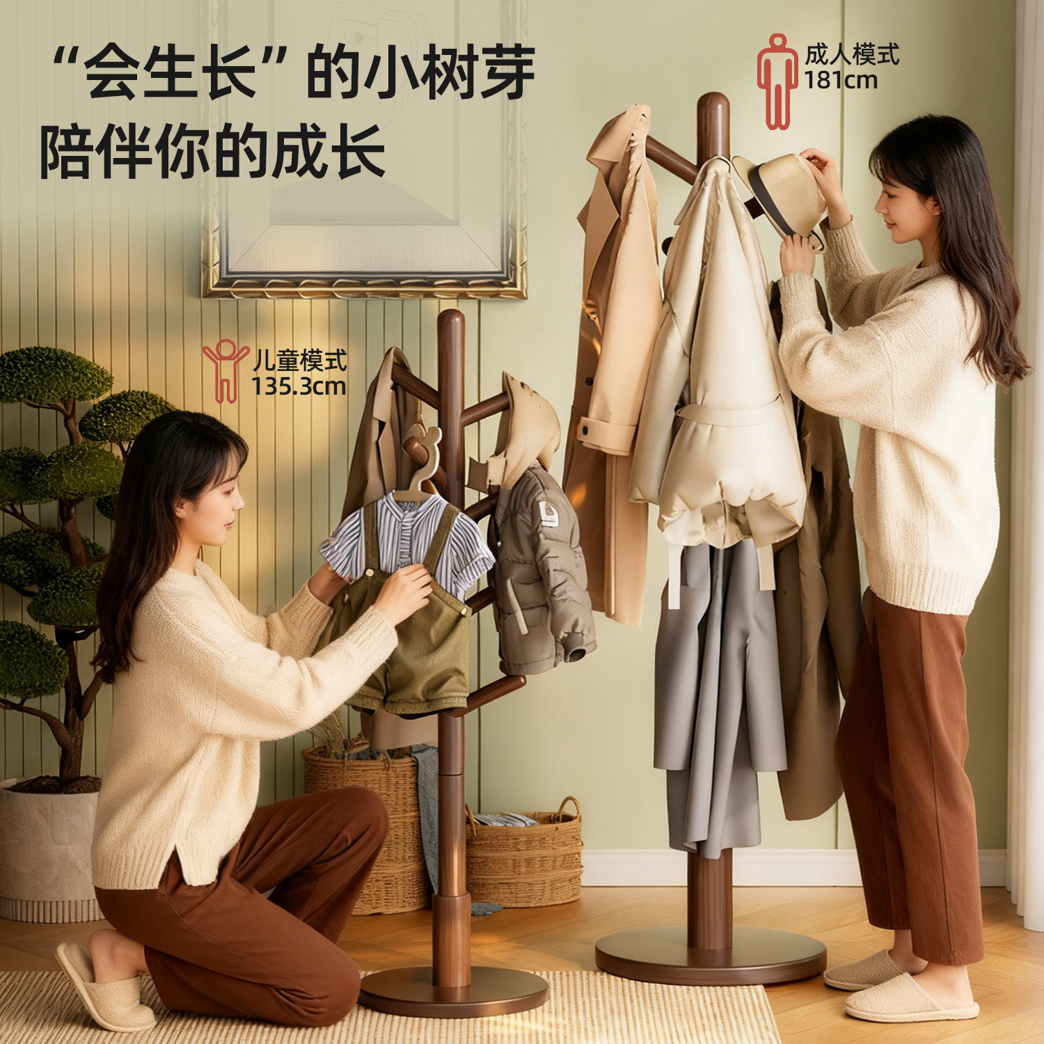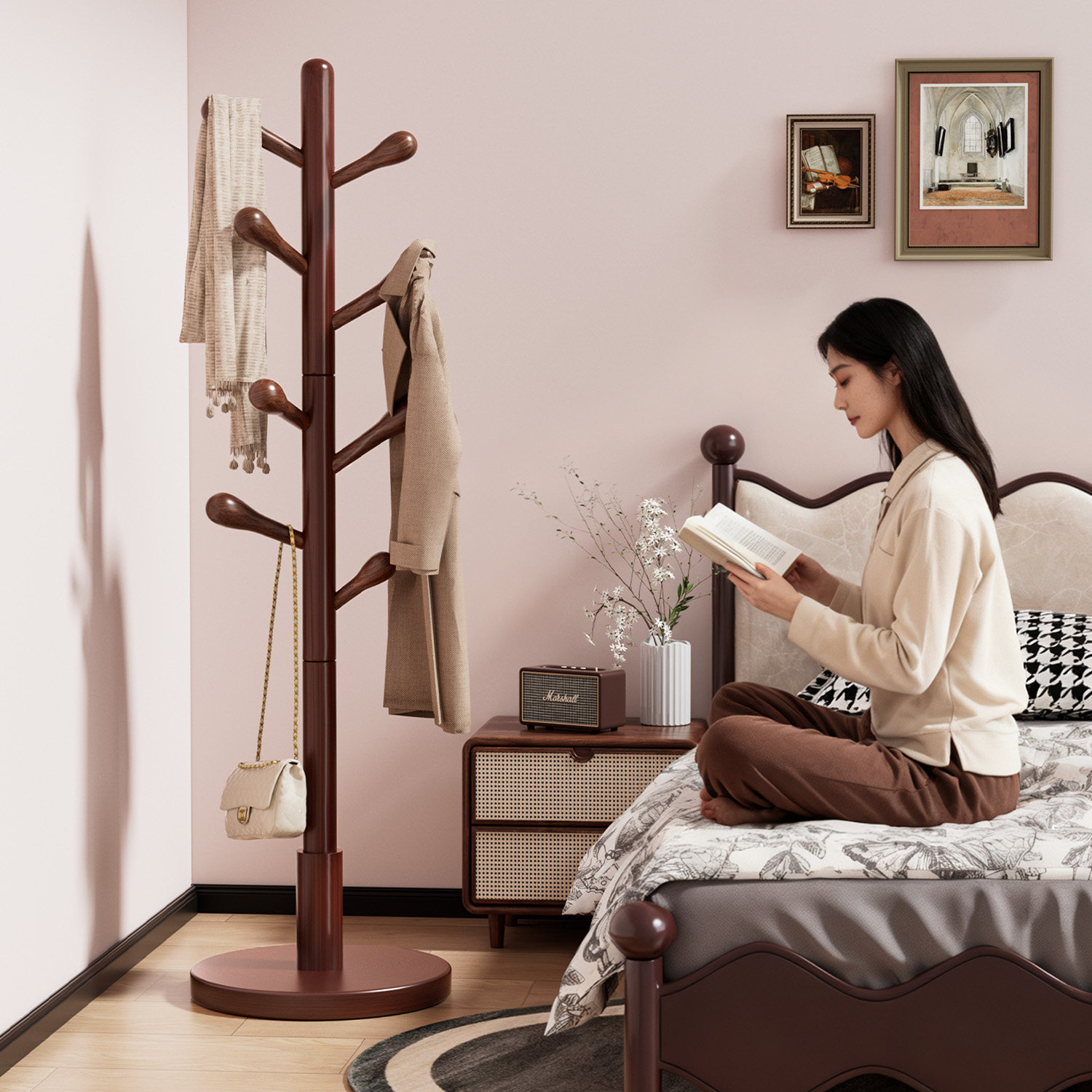 实木挂衣架落地卧室家用衣帽架2025新款 房间挂衣服架子小型置物架